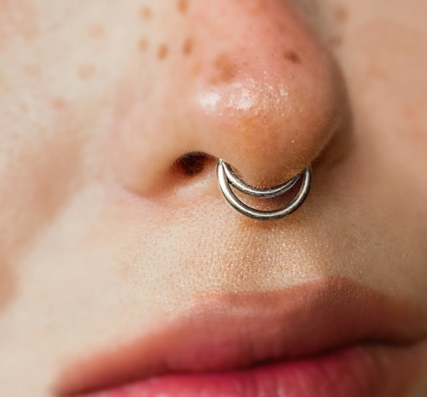Argolla sin fin doble, estilo lunita. Este tipo de argollas siempre se abren para el costado para que no pierdan su forma. Este tipo de piercing se puede usar en las perforaciones: hélix, contra hélix, lóbulo, daith, septum y ombligo