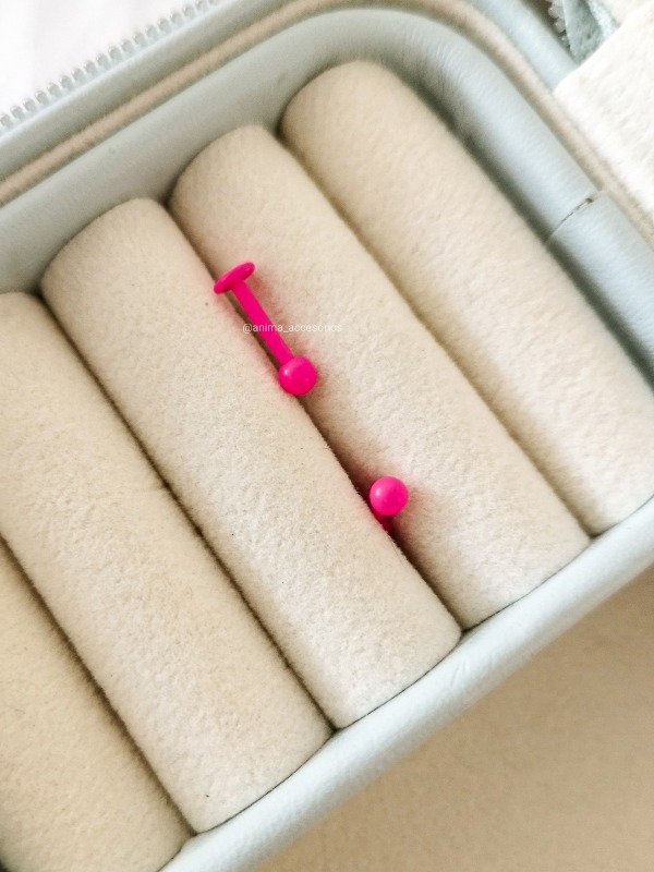 Aros bolita color rosa Neon. Ideal para el verano. Este tipo de piercing se puede usar en las perforaciones: flat, hélix, contra helix, medusa, tragus, conch y lóbulo
