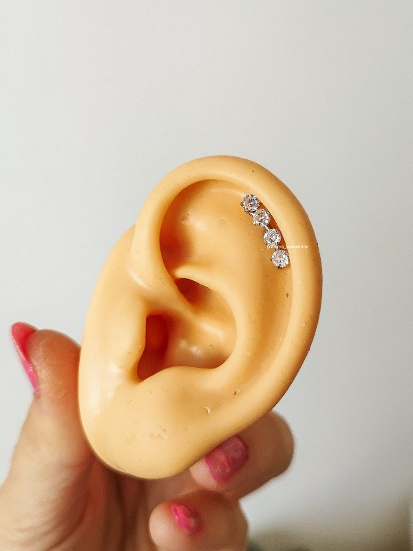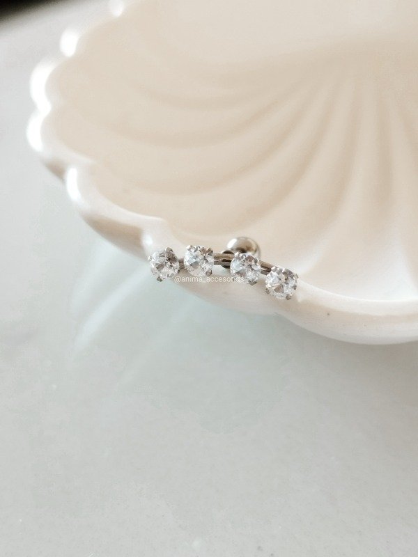Piercing trepador cubics engarzados color blanco. Este tipo de piercing se puede usar en las perforaciones: flat, hélix, conch y lóbulo