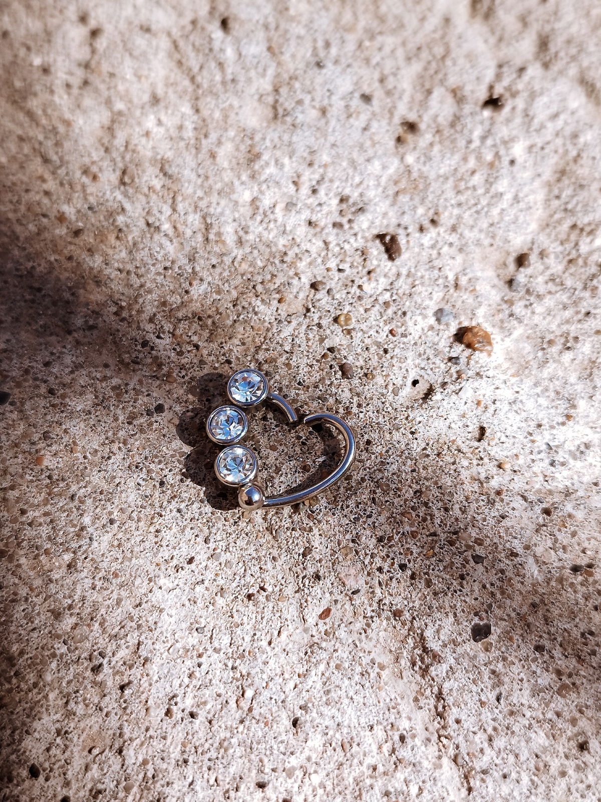 Argolla corazón con cubics color blanco. Este tipo de argollas siempre se abren para el costado para que no pierdan su forma. Este tipo de piercing se puede usar en las perforaciones: hélix, lóbulo, daith y ombligo