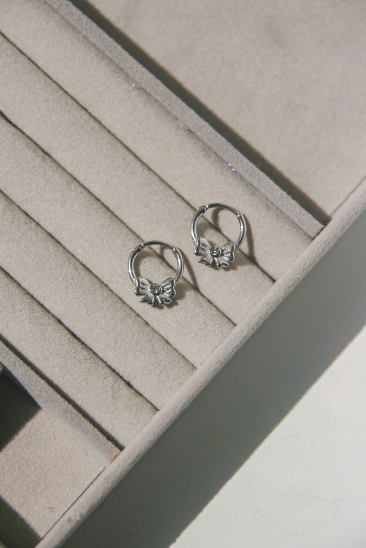 Argolla clicker moño con circonia blanca. Este tipo de piercing se puede usar en las perforaciones: septum, daith, hélix y lóbulo