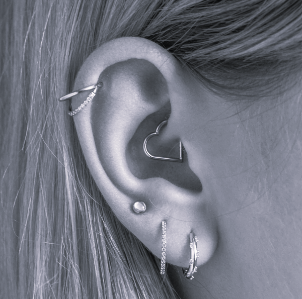 Argolla clicker corazón. Este tipo de piercing se puede usar en las perforaciones: daith, hélix y lóbulo