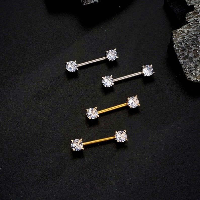 Piercing para el pezón con cubic blanco engarzado. Este tipo de piercing se puede usar en la perforación del pezón
