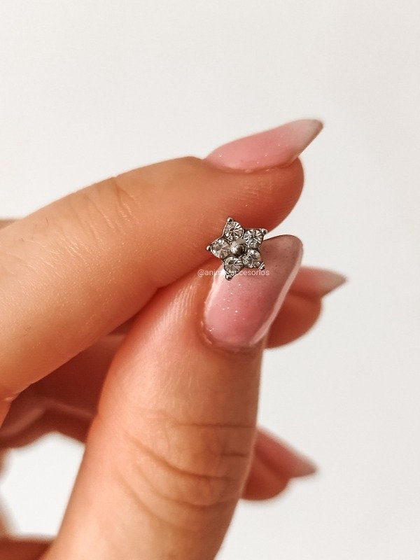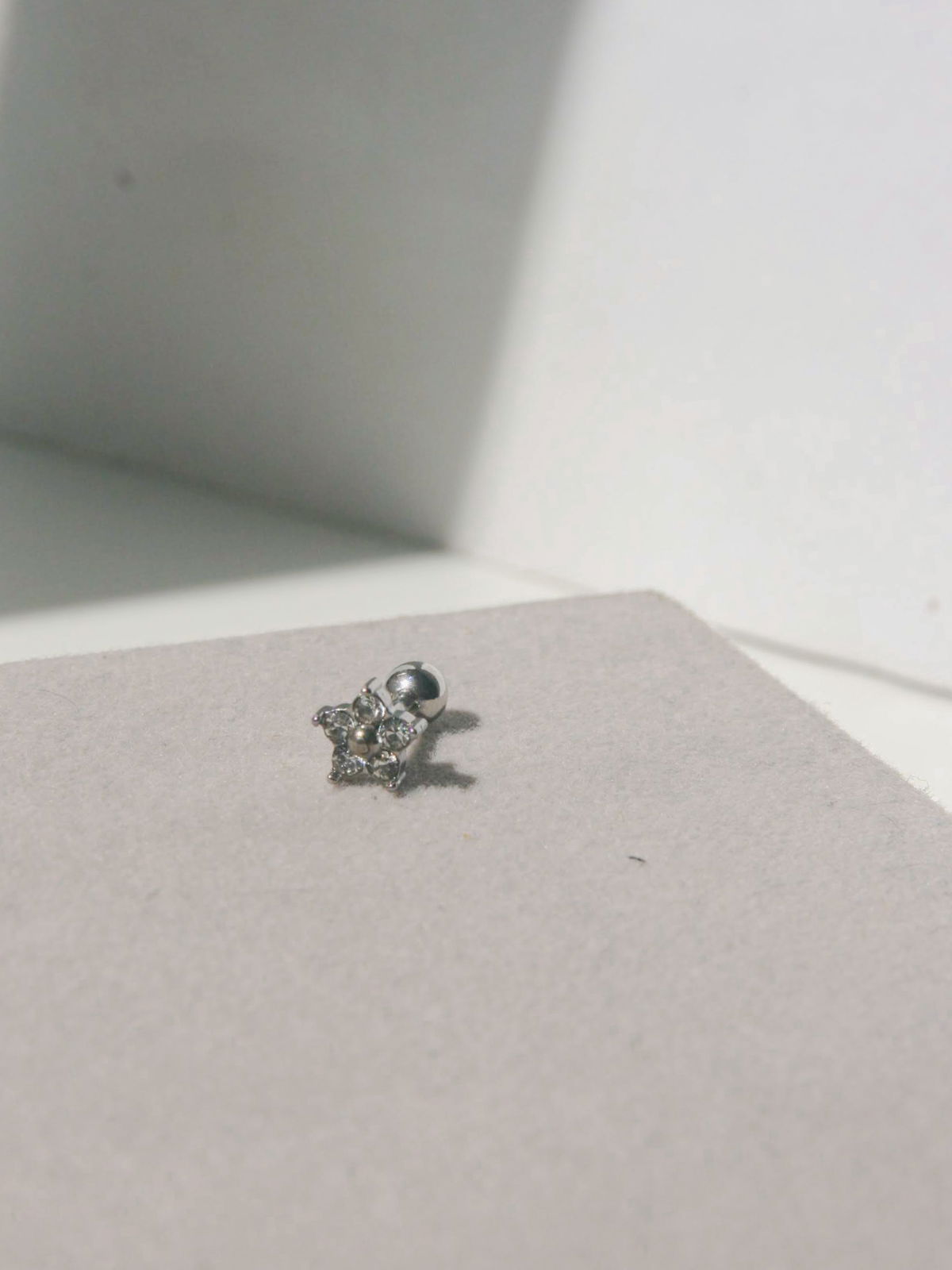 Piercing flor con circonitas. Este tipo de piercing se puede usar en las perforaciones: flat, hélix, conch y lóbulo