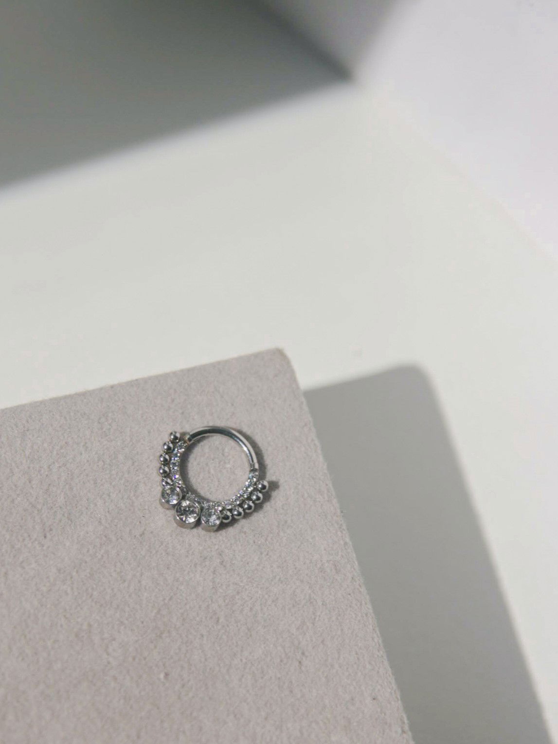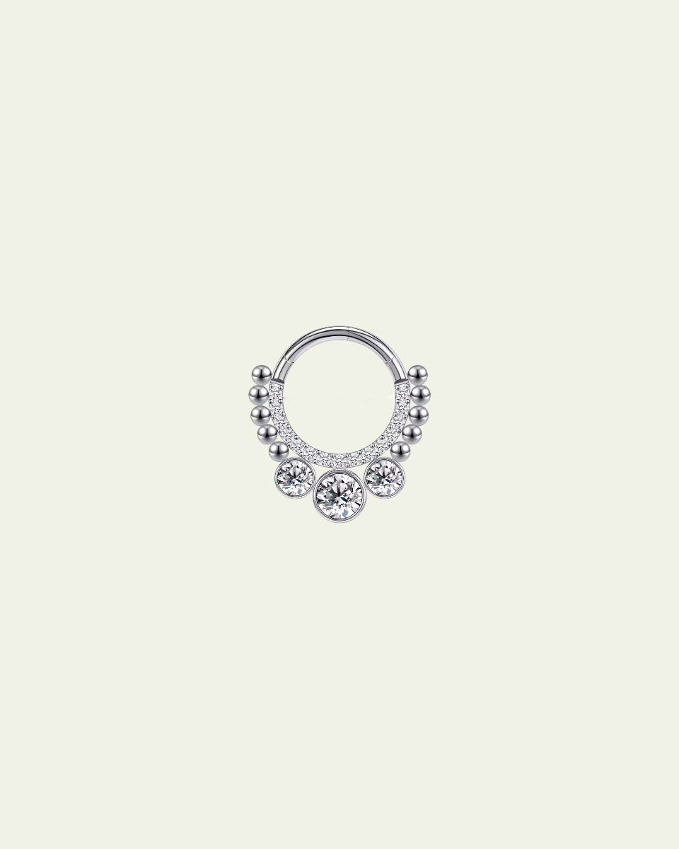 Argolla clicker circonitas engarzadas. Este tipo de piercing se puede usar en las perforaciones: septum, hélix y daith