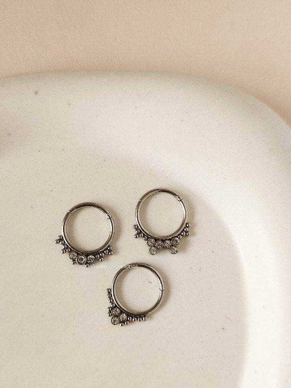 Argolla clicker con filigranas y cubics. Este tipo de piercing se puede usar en las perforaciones: septum, hélix y daith