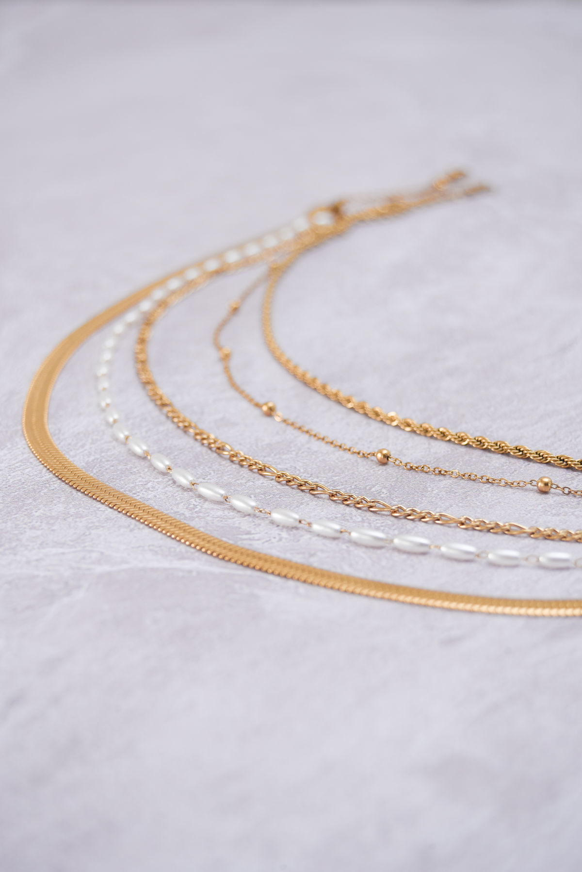 Un collar lleno de mini perlas alargadas hecho de acero para añadir elegancia y sofisticación a tus looks. 🦪