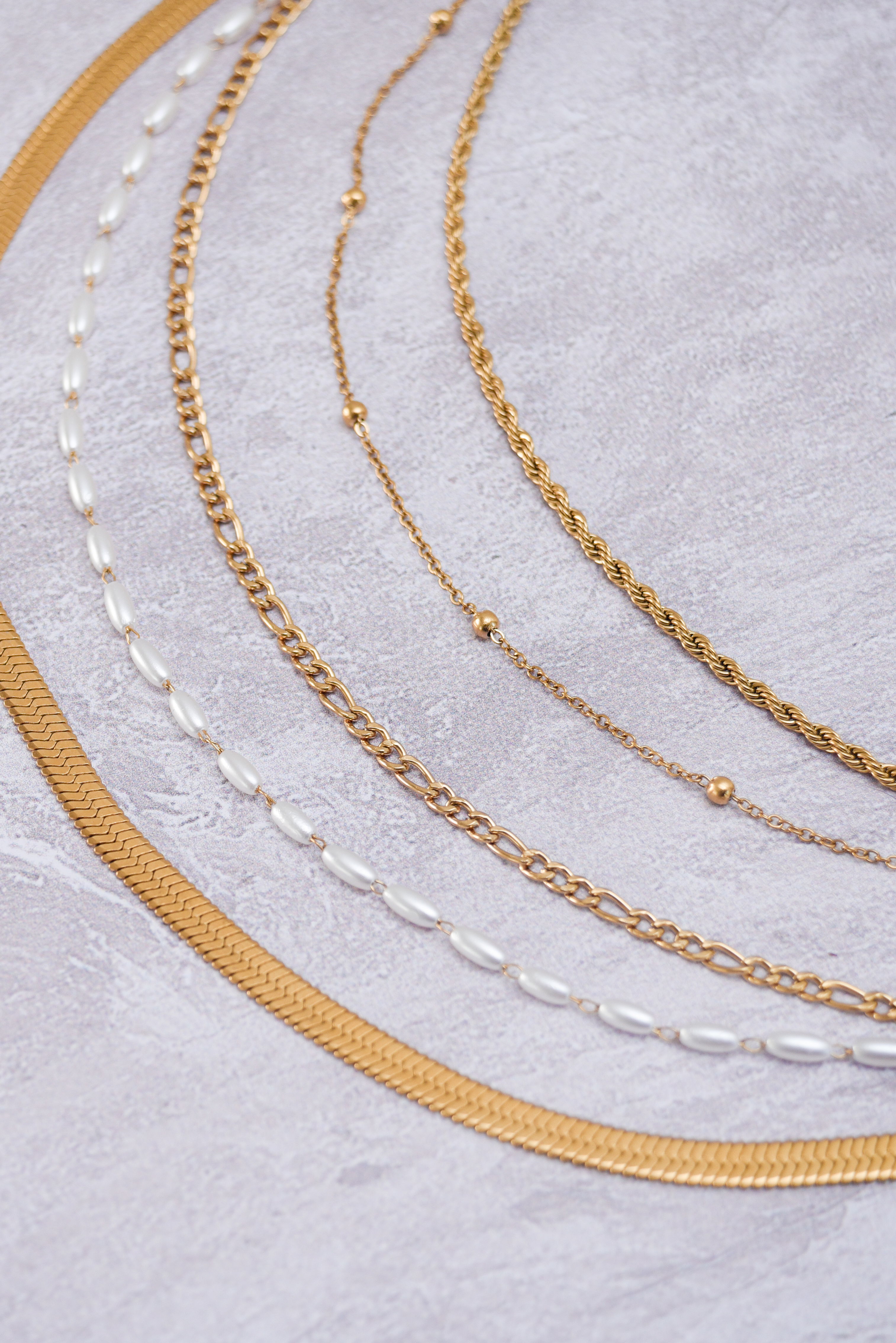 Un collar lleno de mini perlas alargadas hecho de acero para añadir elegancia y sofisticación a tus looks. 🦪