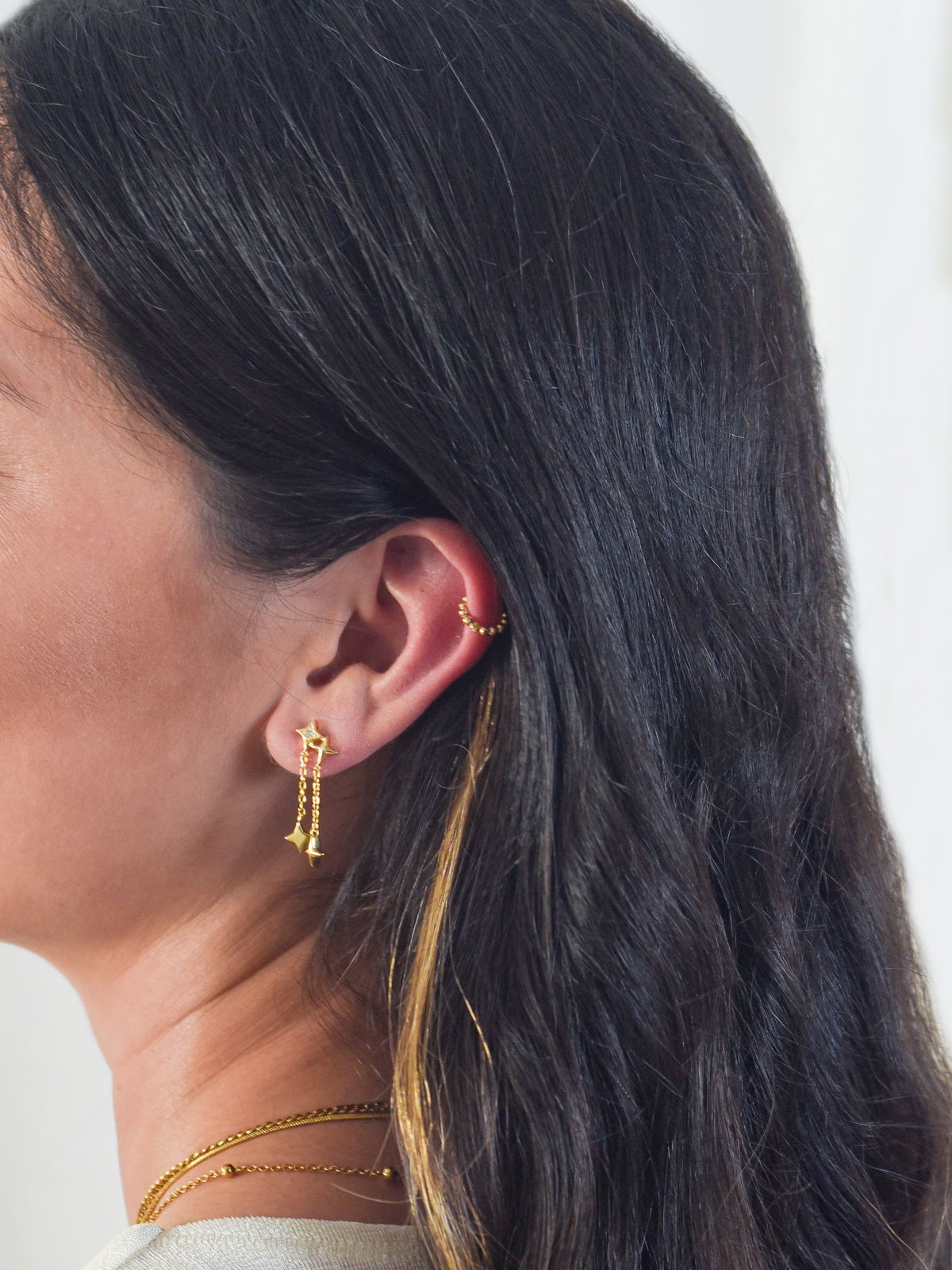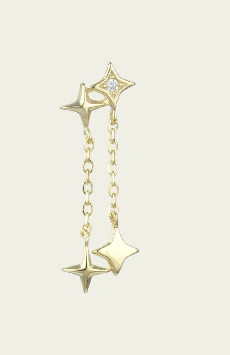 El aro Canopus tiene un diseño llamativo y brillante. Están formados por estrellas con circonias de la que cuelgan dos estrellas más lisas. Este modelo se puede utilizar en las perforaciones: 1er, 2do, 3er y 4to lóbulo (ver foto abajo)