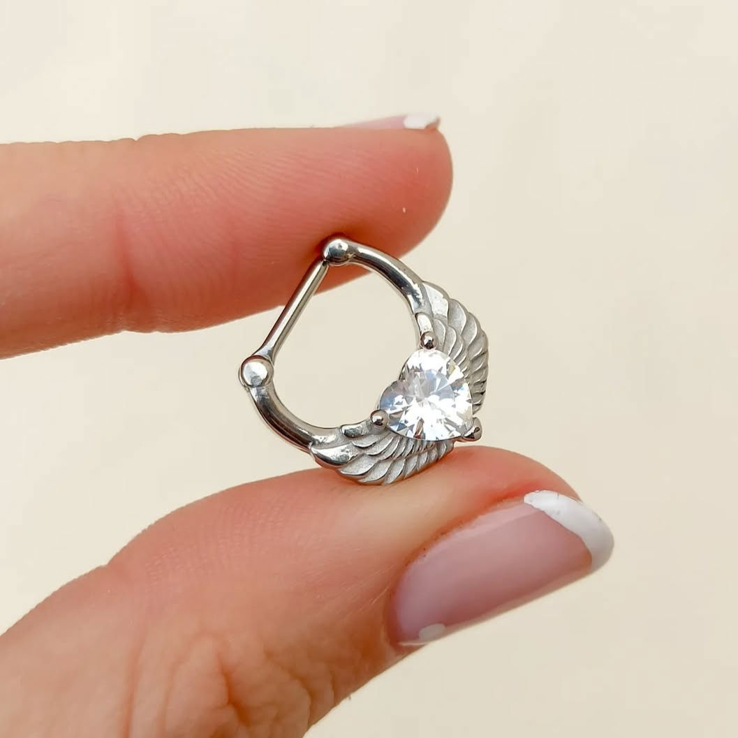 Septum con corazón cubic cristal. Este tipo de piercing se puede usar en las perforaciones: 1er, 2do y 3er lóbulo, septum, daith, hélix (ver foto abajo)