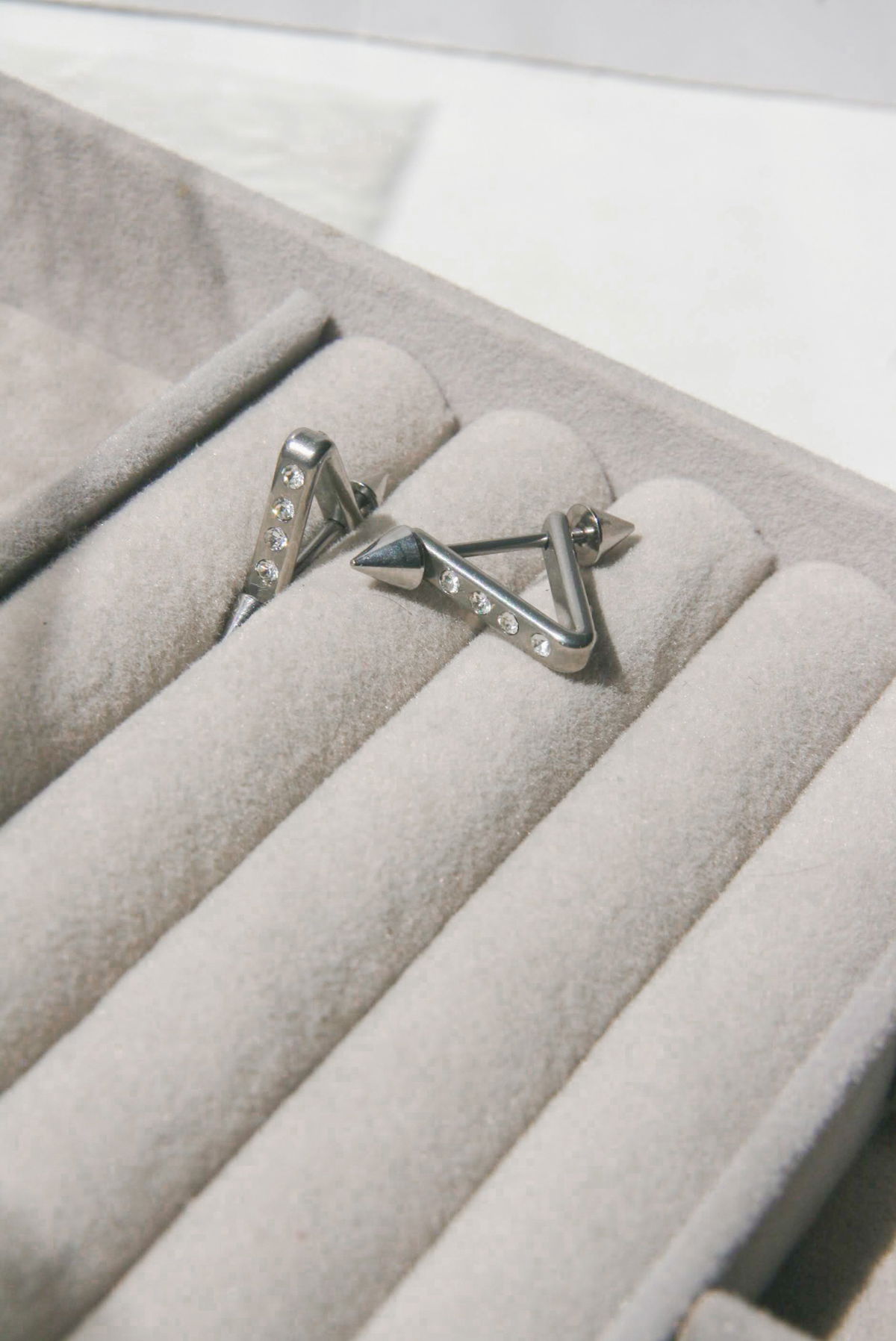 Pezonera en forma de V con cubics. Este tipo de piercing se puede usar en la perforación del pezón