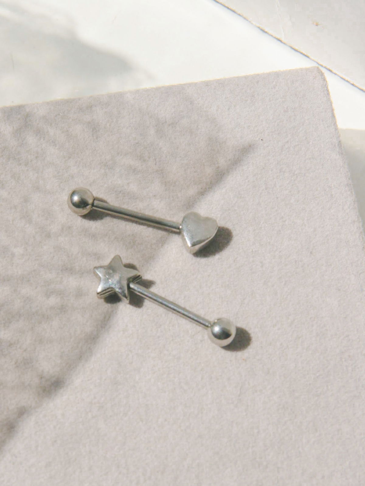 Barbell recto con estrella / corazón inflado y bolita. Este tipo de piercing se puede usar en la perforación del pezón
