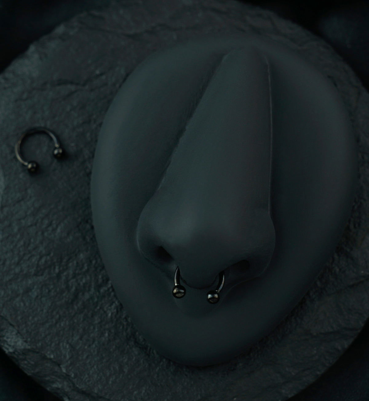 Argolla bull clásica negra. Este tipo de piercing se puede usar en las perforaciones: hélix, daith, septum y lóbulo