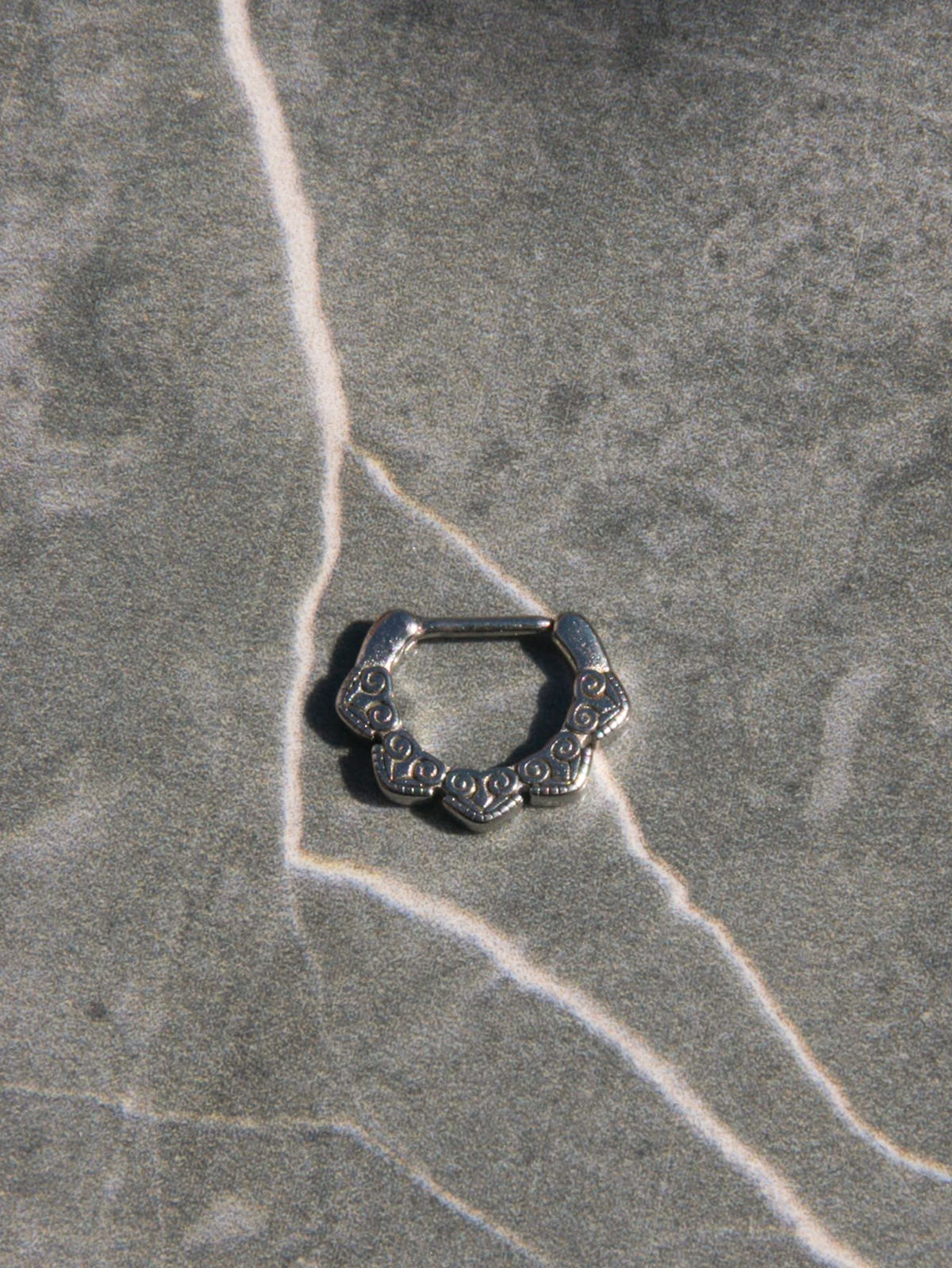 Septum corazones con detalles. Este tipo de piercing se puede usar en las perforaciones: septum, daith, hélix y lóbulo