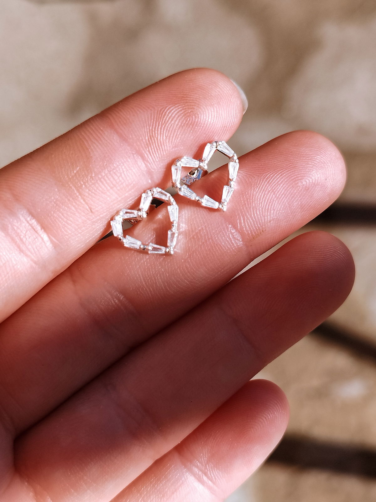 Aros con forma de corazón con circonitas blancas. Este modelo esta pensado para la primera combinación. Son super llamativos y brillosos! Este modelo se puede utilizar en las perforaciones: 1er, 2do, 3er y 4to lóbulo (ver foto abajo)