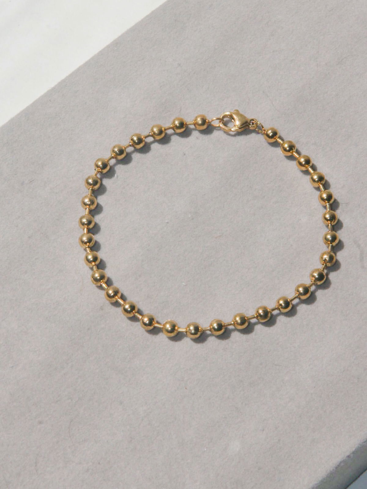 Una pequeña cadena formada por bolitas facetadas que harán brillar tu muñeca