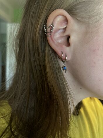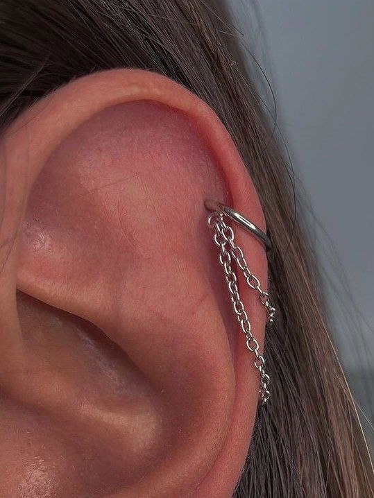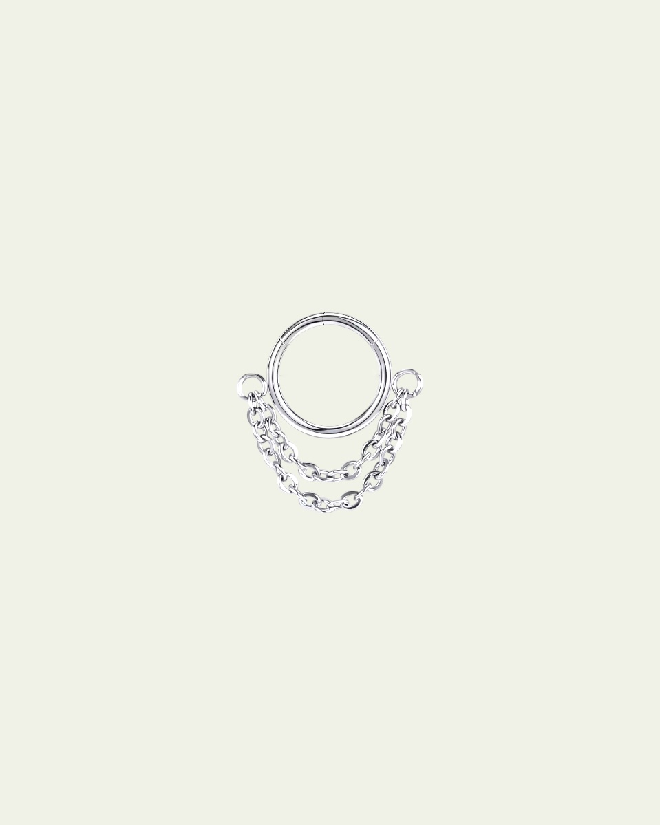 Argolla clicker lisa con cadenas de distintos largos. Este tipo de piercing se puede usar en las perforaciones: conch, helix y lóbulo