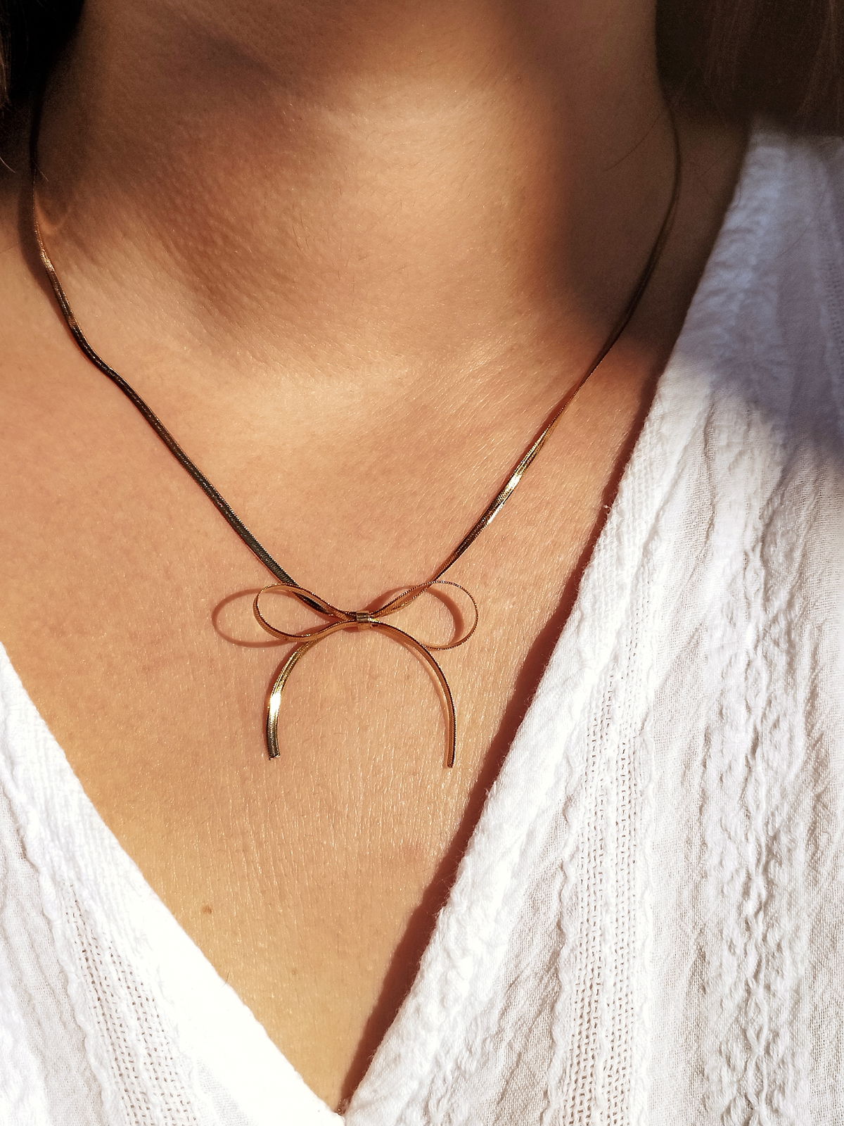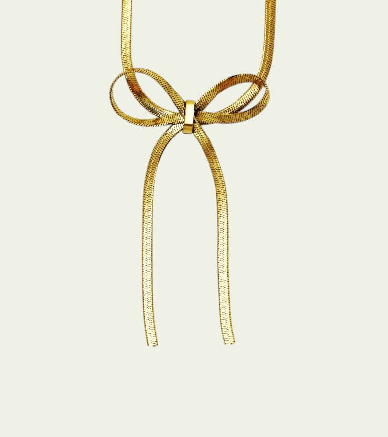 El collar coquette está diseñado con nuestra cadena snake con una terminación en moño que lo hace de lo mas hermoso!