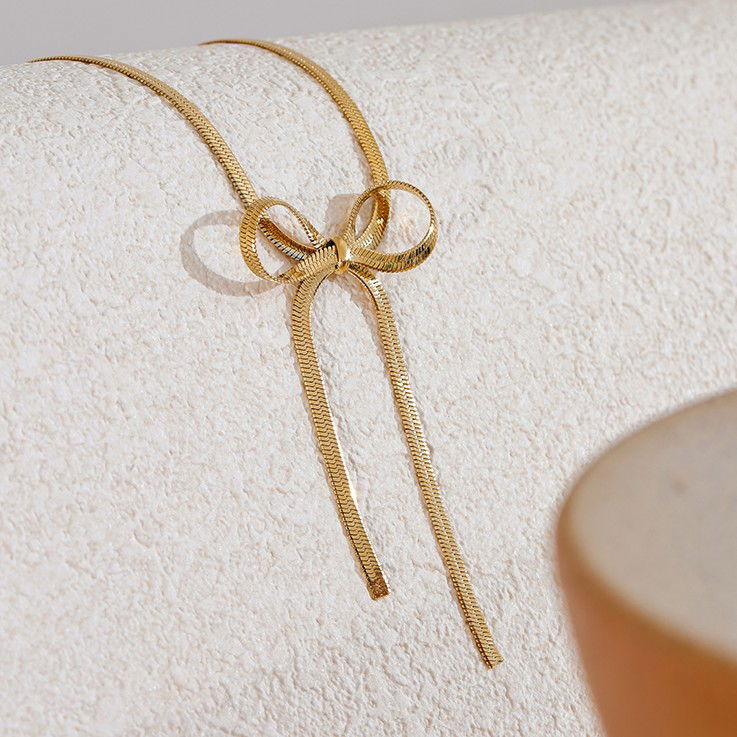 El collar coquette está diseñado con nuestra cadena snake con una terminación en moño que lo hace de lo mas hermoso!