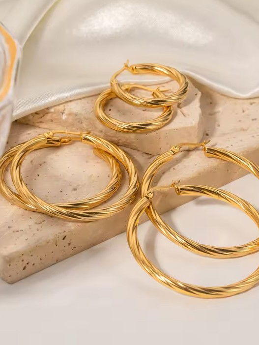 Argollas estilo trenzadas, quedan preciosas combinadas en distintos tamaños. Este modelo se puede utilizar en las perforaciones: 1er, 2do lóbulo (ver foto abajo)