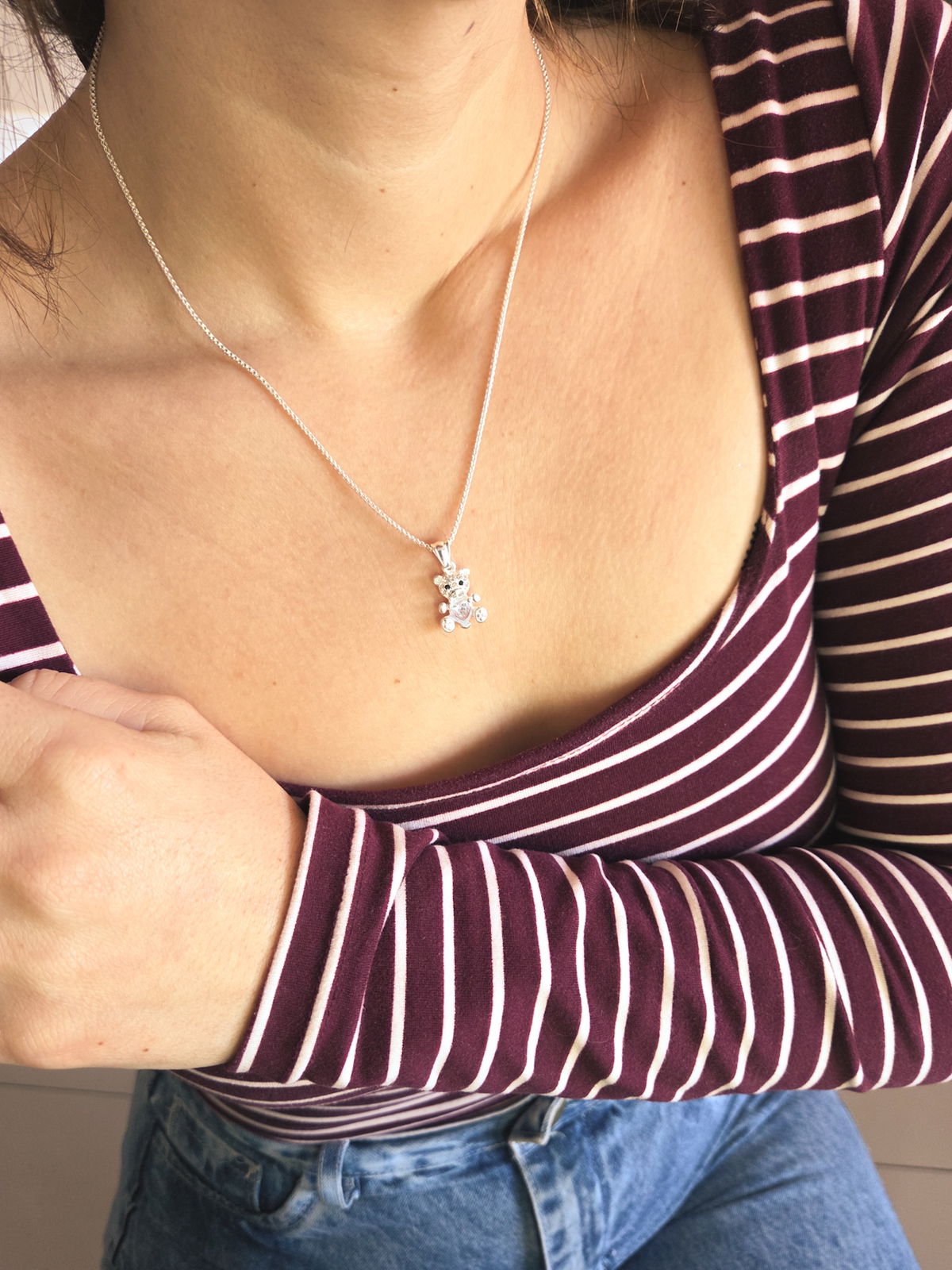 Collar con dije pasante corazón calado con cubics engarzados y mini corazón liso
