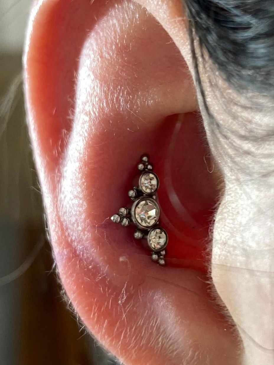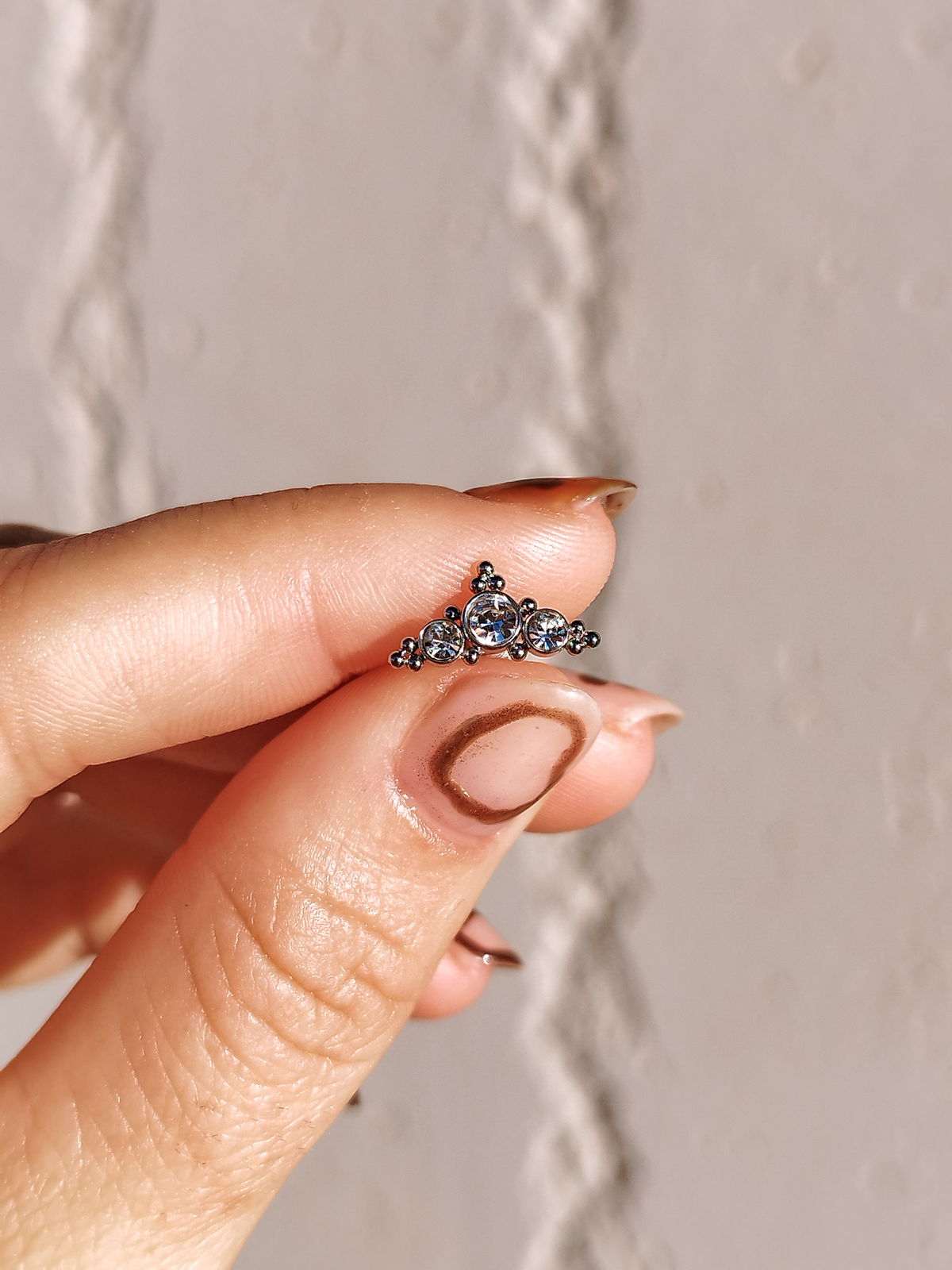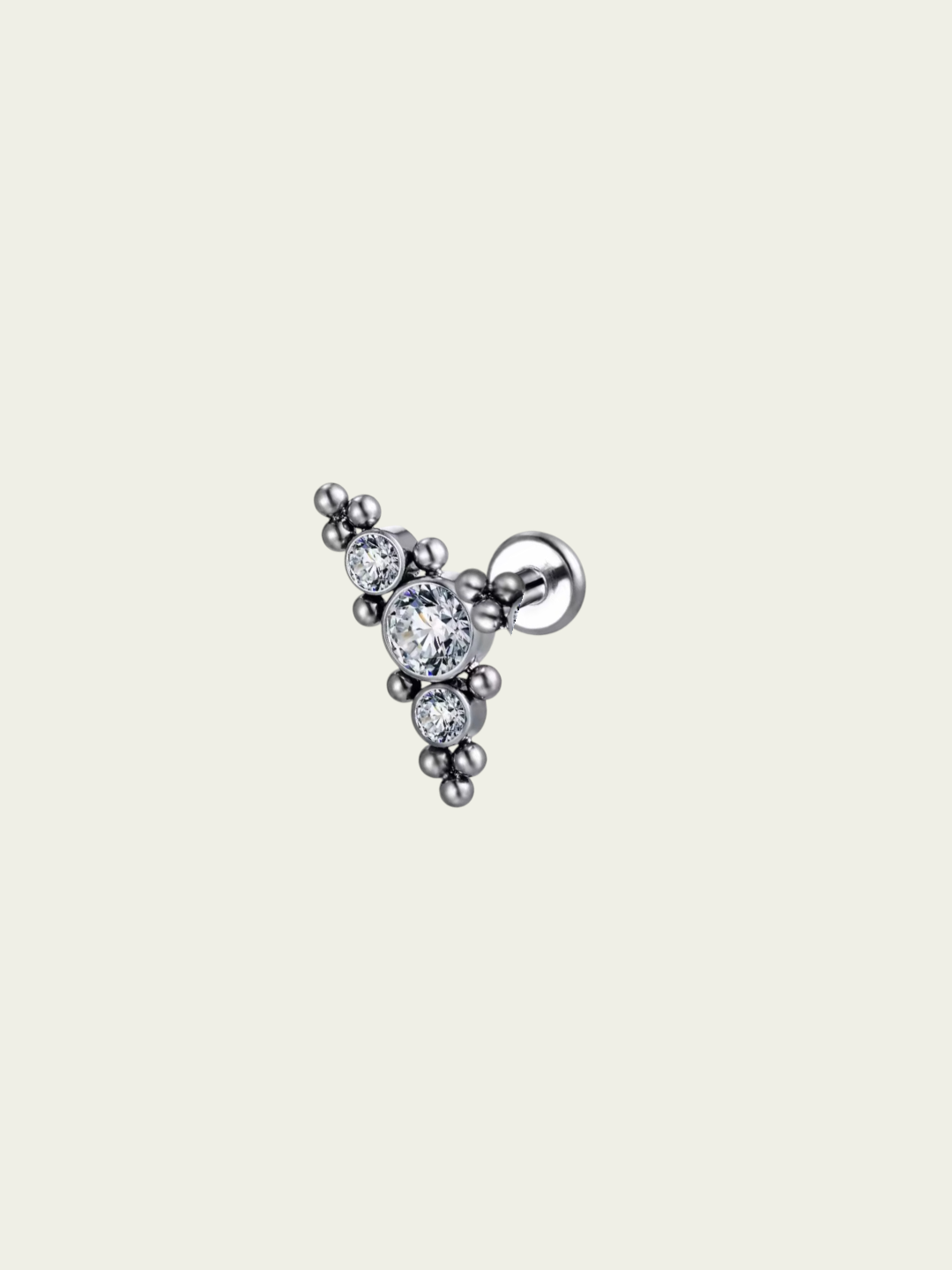 Piercing labret filigranas con cubics blancos. Este tipo de piercing se puede usar en las perforaciones: flat, hélix, conch y lóbulo