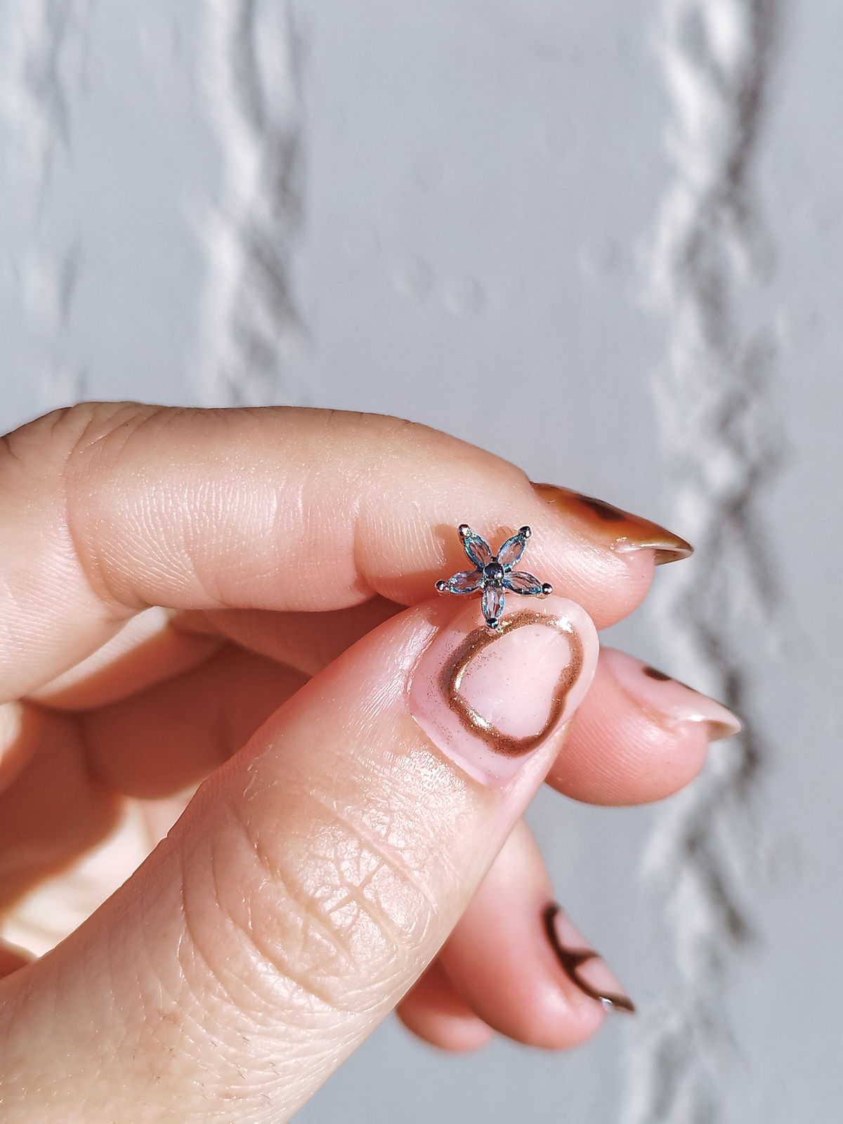 Aro barbell flor cubic color celeste. Este tipo de piercing se puede usar en las perforaciones: hélix, flat, conch y lóbulo