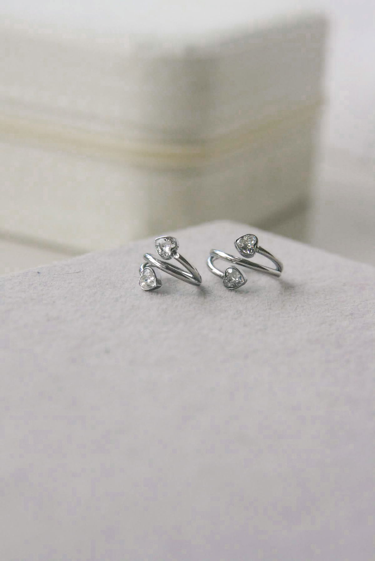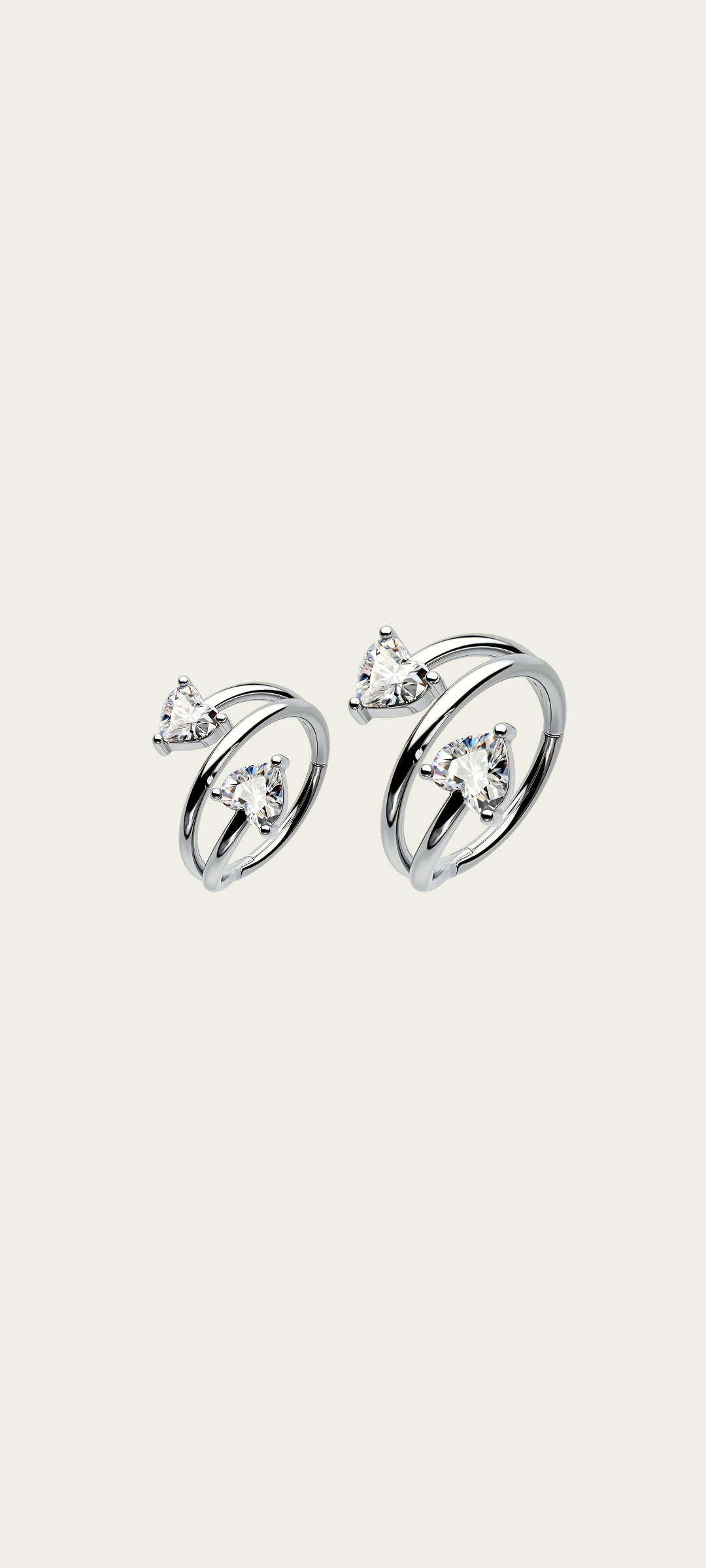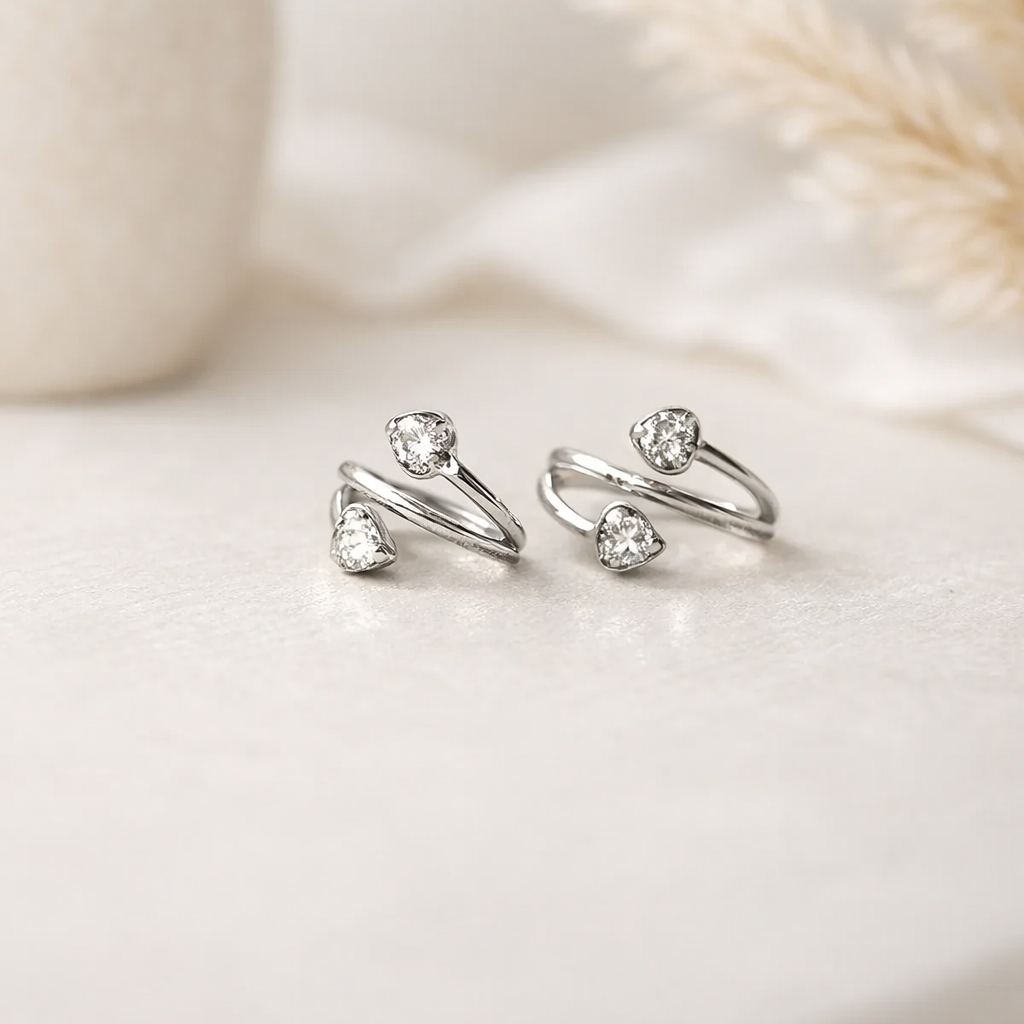 Argolla clicker con cubic corazón blancos, cambia el color segun la luz. Este tipo de piercing se puede usar en las perforaciones: lóbulo y hélix, conch