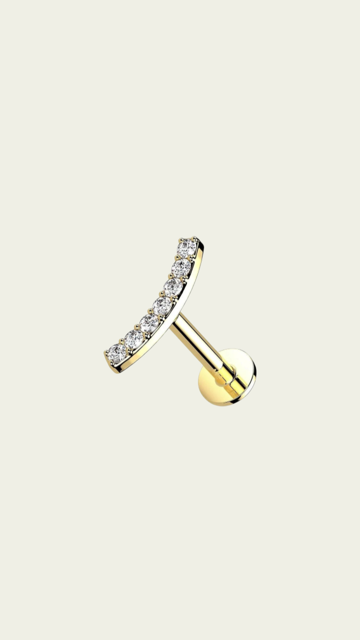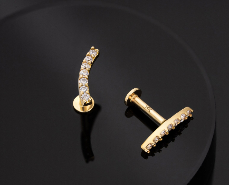 Piercing trepador cubic. Este tipo de piercing se puede usar en las perforaciones: flat, hélix, contra hélix, conch y lóbulo