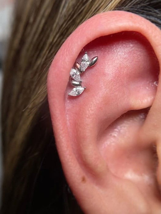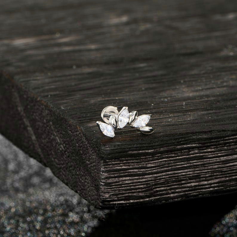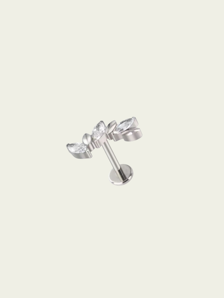 Piercing labret cubics estilo trepador. Este tipo de piercing se puede usar en las perforaciones: flat, hélix, conch y lóbulo