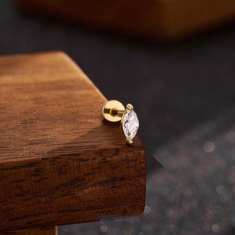Piercing labret mini ovalado cubic. Este tipo de piercing se puede usar en las perforaciones: flat, hélix, contra hélix, conch, lóbulo y tragus