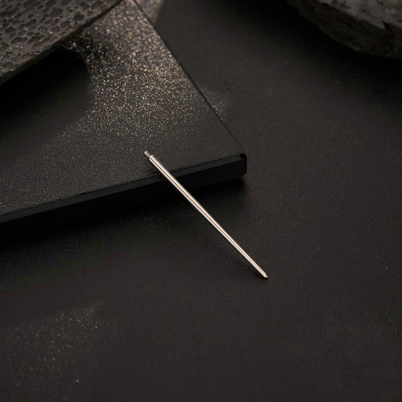 Este pasador cónico se utiliza para insertar joyas con rosca interna en un movimiento rápido. Está hecho de acero inoxidable y tiene un extremo roscado de 1,2 mm.