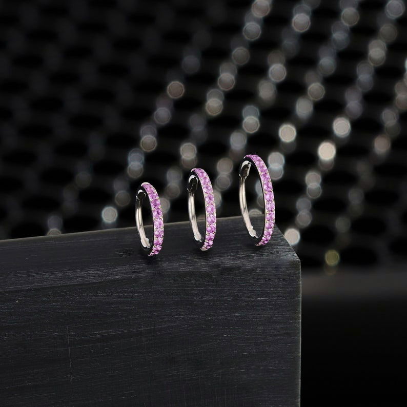 Argolla clicker circonias Lila. Este tipo de piercing se puede usar en las perforaciones: nostril, ombligo, tragus, rook, labio,conch, hélix, contra hélix y lóbulo
