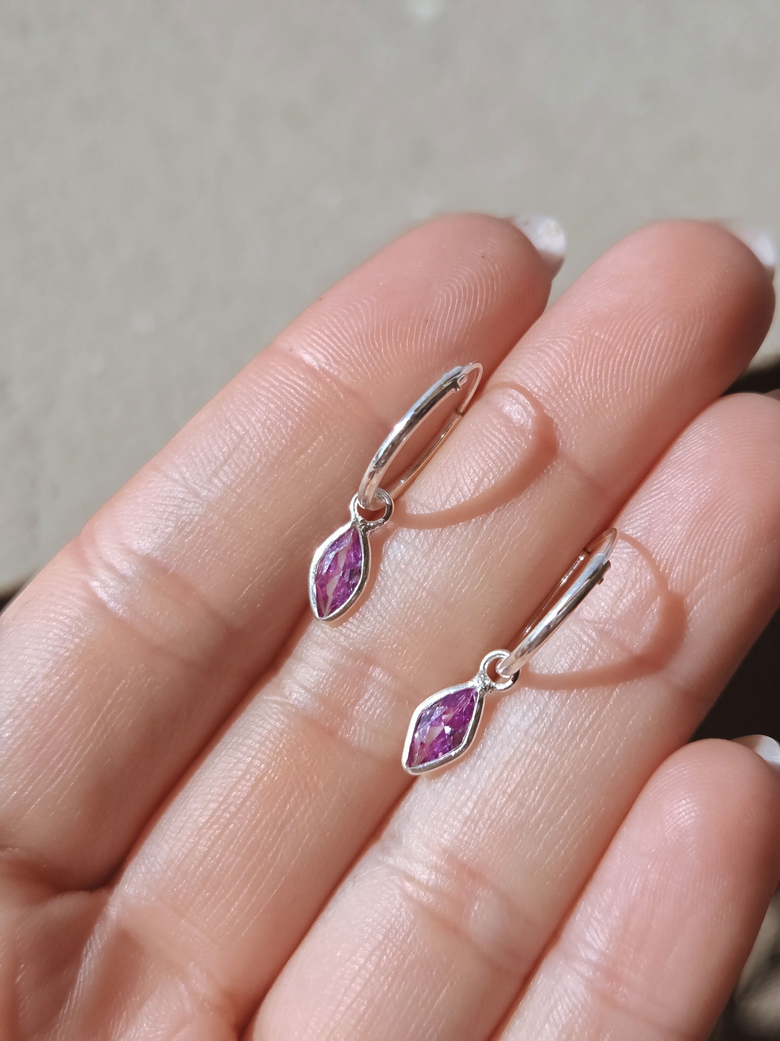Argollas de tamaño mediano con charm rombo color violeta. Podes usar la argolla con o sin el dije! Este modelo se puede utilizar en las perforaciones: 1er, 2do, 3er, 4to lóbulo (ver foto abajo)