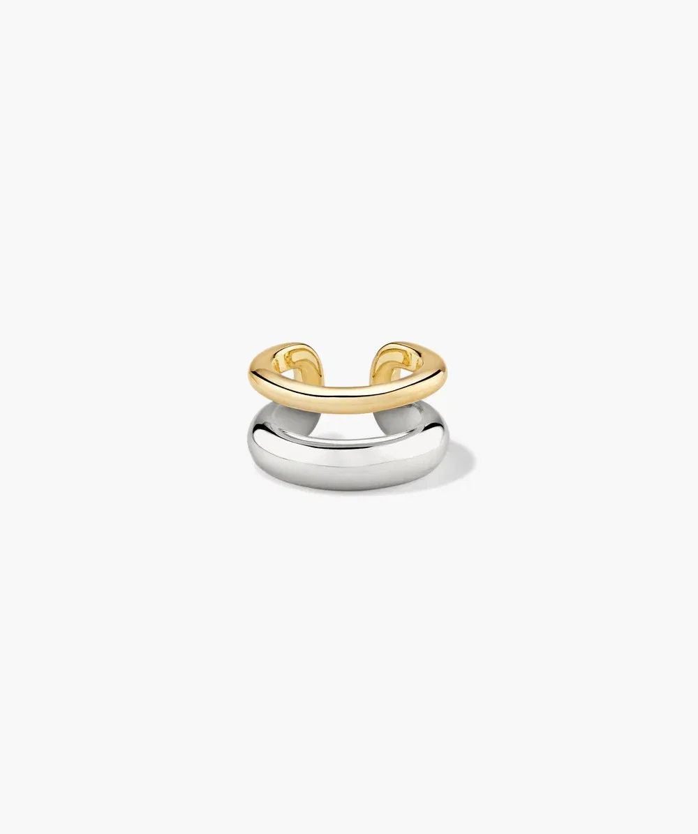 Abri un poco el cuff con la ayuda de tus dedos, deslizalo por la parte superior de la oreja, bajalo hasta que encaje en tu oreja y presioná para ajustarlo.