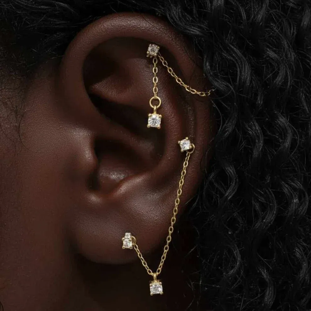 Dije cadena doble con cubic para agregar a las argollitas y aros
