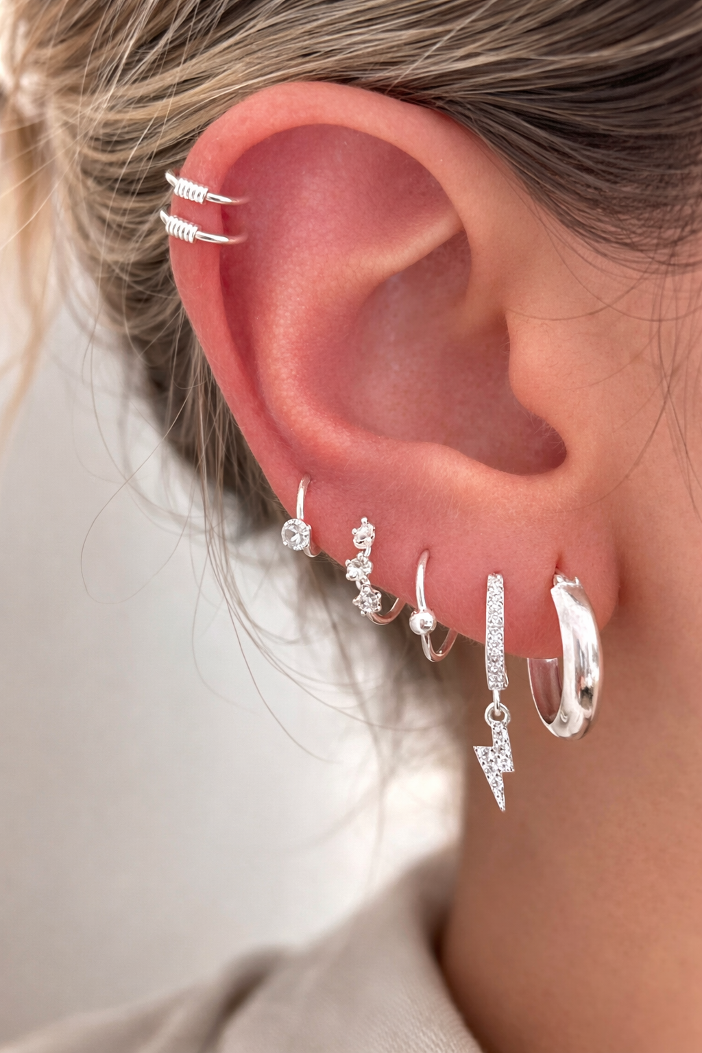 Este tipo de aros se pueden usar en las perforaciones: hélix, 1er, 2do y 3er lóbulo, nariz, septum, dait, tragus, boca