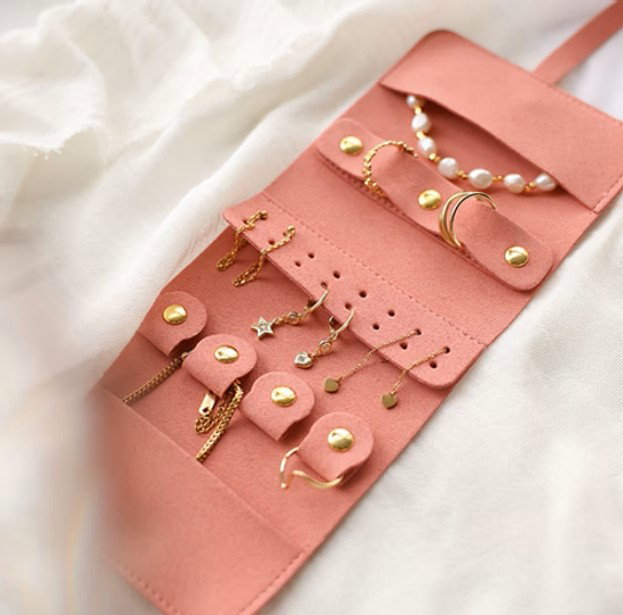 Tiene espacio para organizar tus anillos, aros, colgar tus cadenas y pulseras. Podes enrollarlo y llevarlo a todos lados con vos.