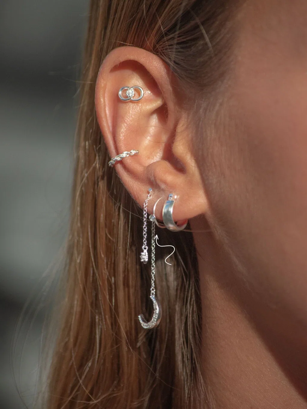 Este tipo de aros se pueden usar en las perforaciones: hélix, 1er, 2do y 3er lóbulo, nariz, septum, dait, tragus, boca