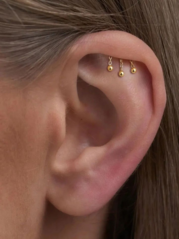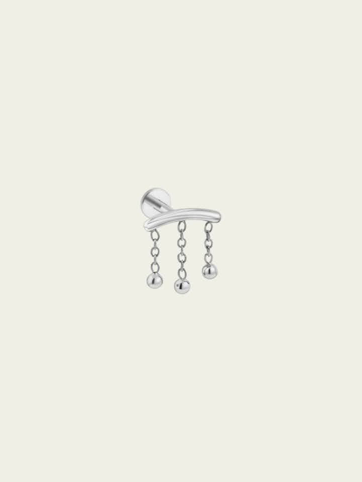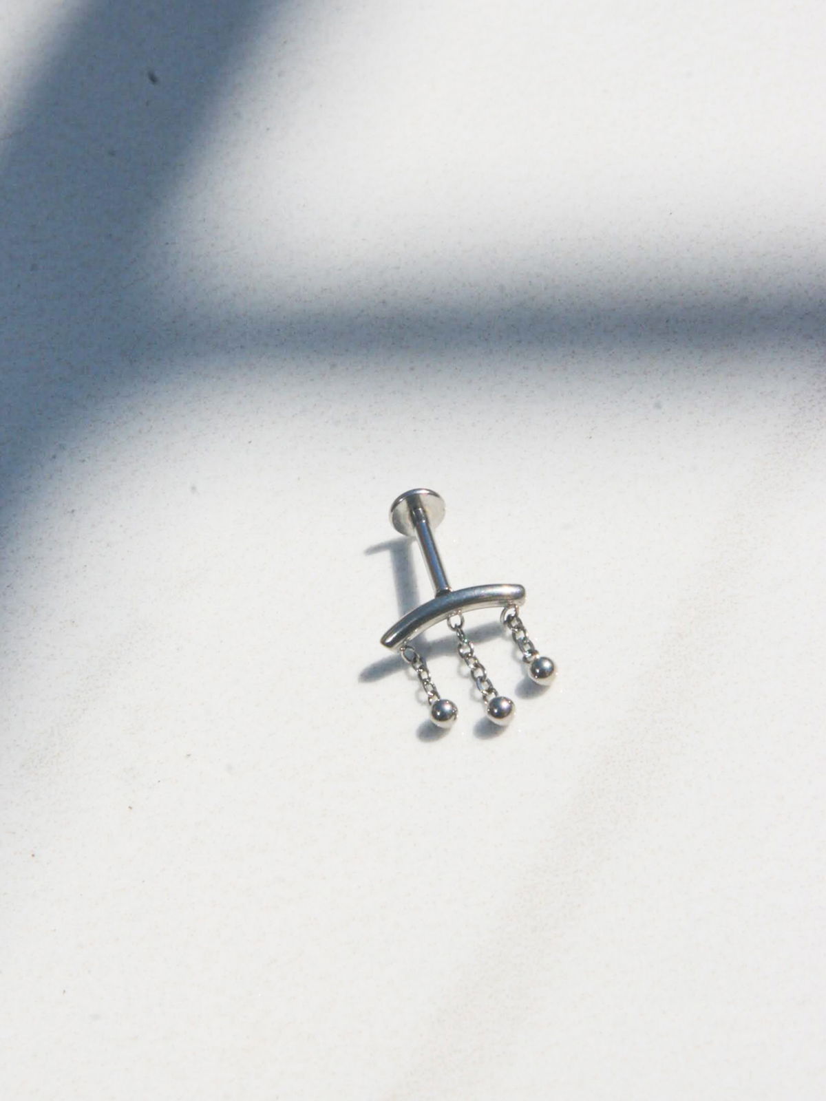 Piercing labret barra curva lisa con esferas colgantes. Este tipo de piercing se puede usar en las perforaciones: flat y hélix