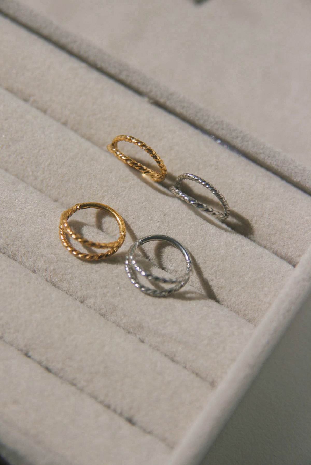 Argolla clicker doble trenzada. Este tipo de piercing se puede usar en las perforaciones: hélix, conch y lóbulo