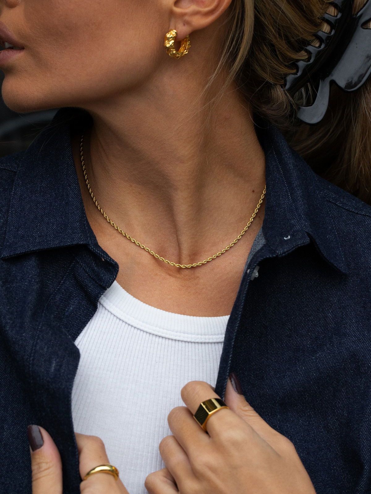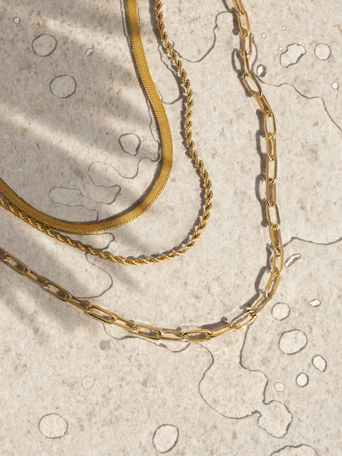 Si sos amante del layering, la cadena Alu de acero va a ser tu próxima obsesión. ✨ Llévalo solo para un look más minimal o crea mil combis con collares diferentes. 💛 Un collar waterproof perfecto para verano.