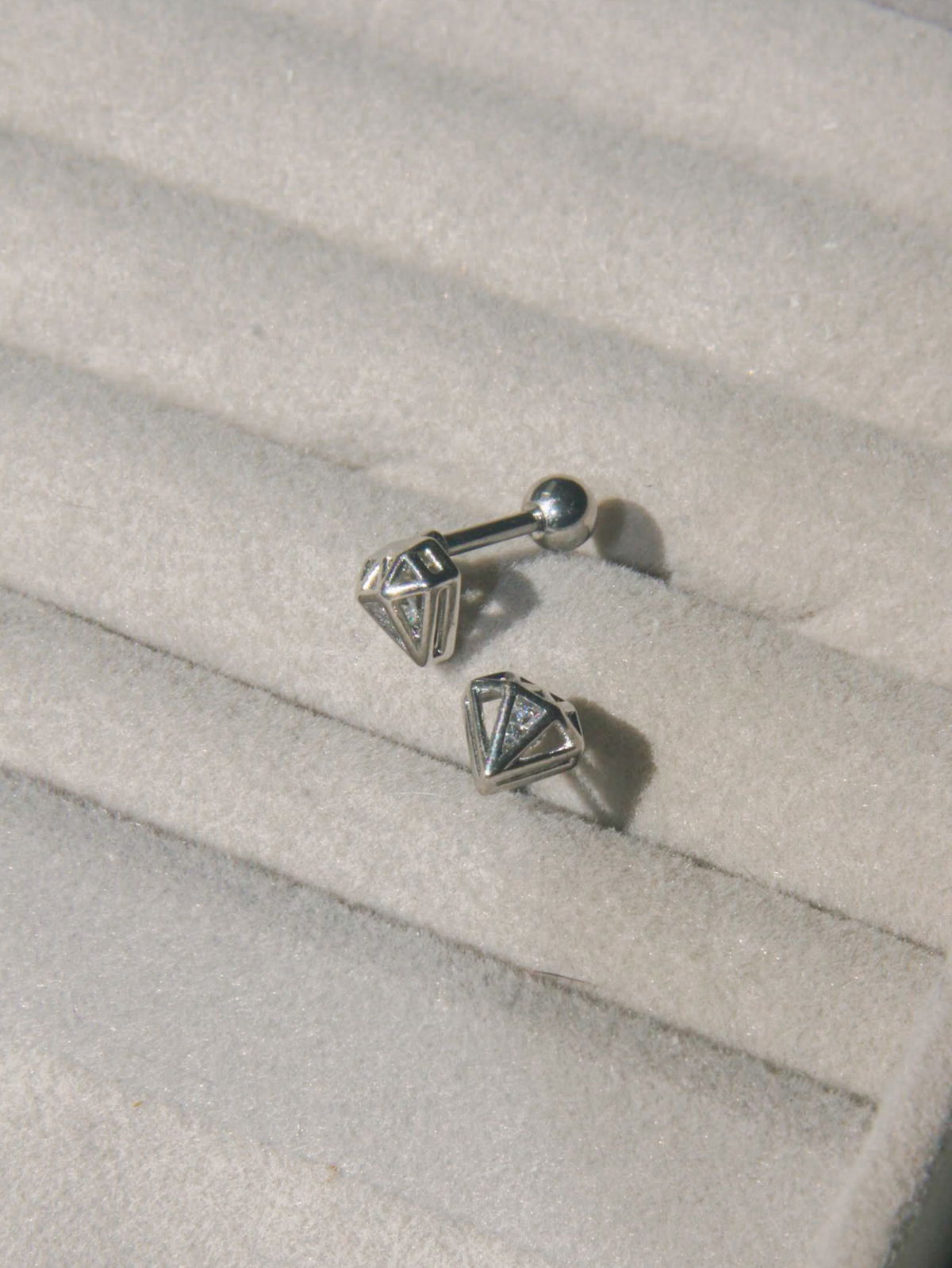 Aro barbell diamante con cubic adentro. Este tipo de piercing se puede usar en las perforaciones: flat, hélix, conch y lóbulo