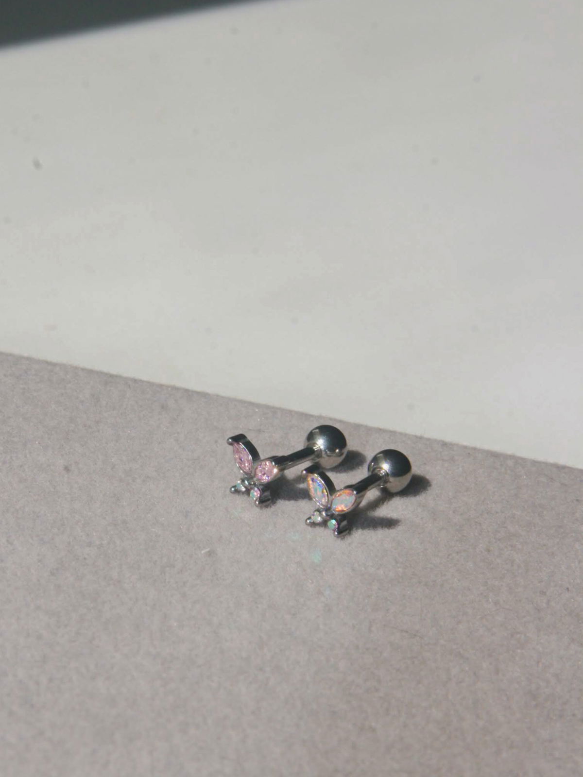Aro barbell mariposa. Este tipo de piercing se puede usar en las perforaciones: flat, hélix, conch y lóbulo