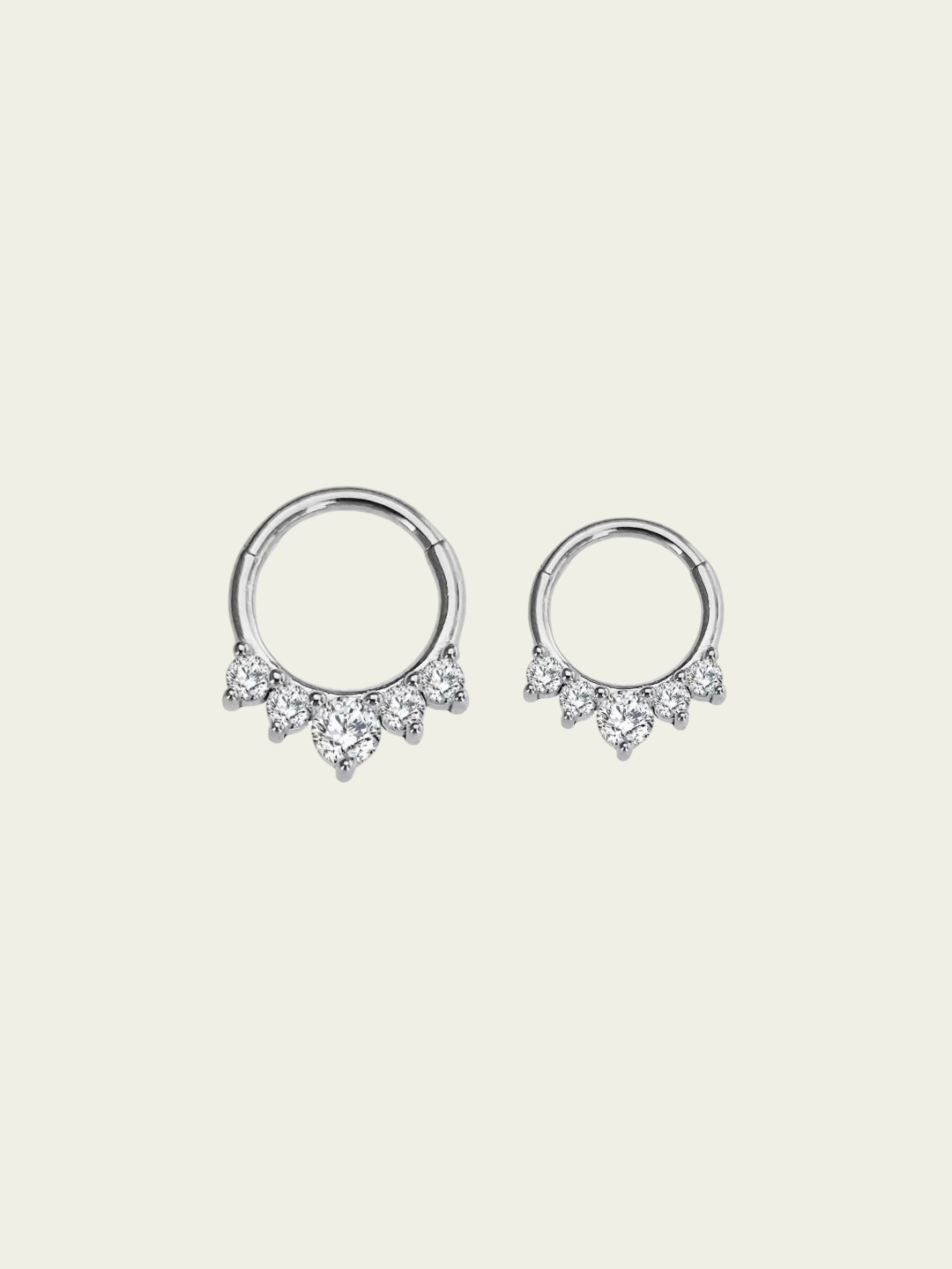 Tipo de cierre: Segmentada. Este tipo de aros tienen una bisagra que al cerrar quedan como argollitas sin fin. Es uno de los cierres más cómodos y seguros de llevar!