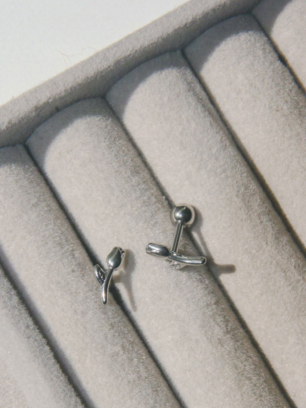Aro barbell flor tulipán. Este tipo de piercing se puede usar en las perforaciones: flat, hélix, conch y lóbulo