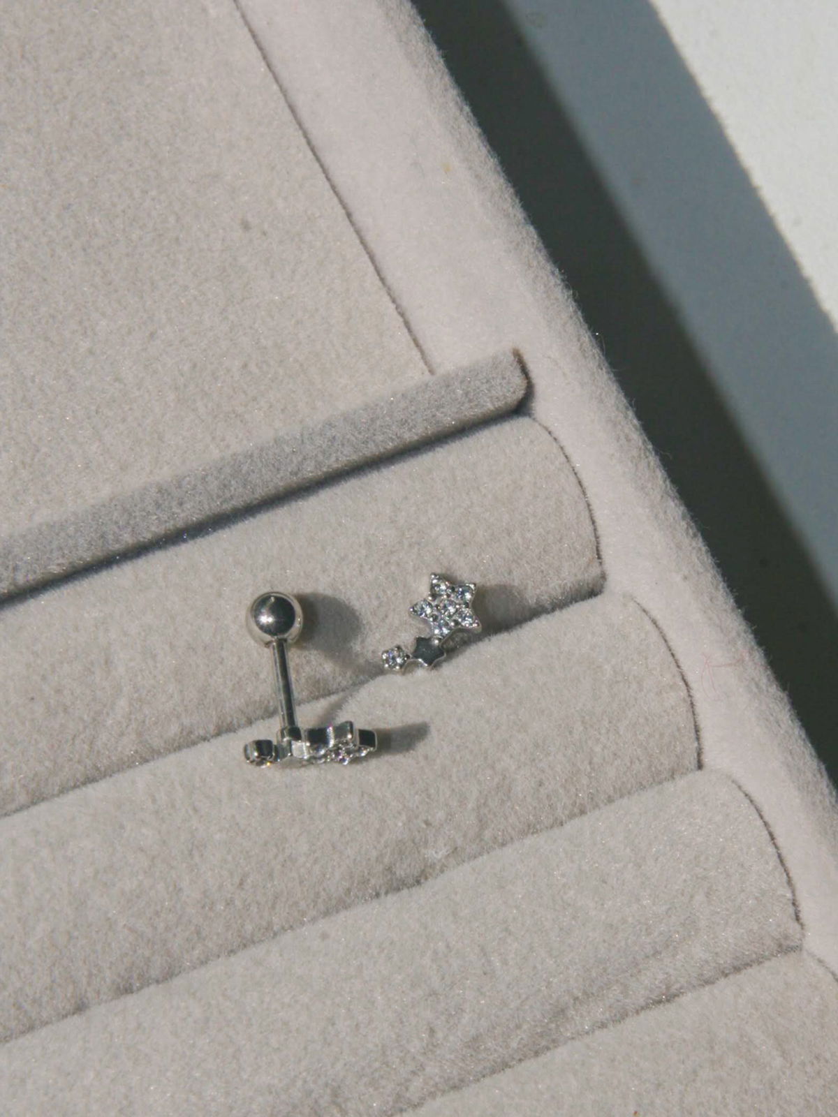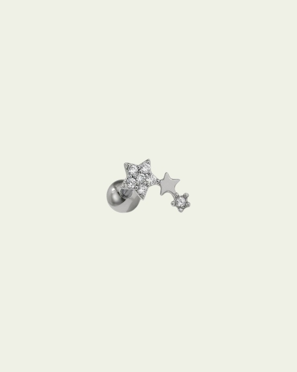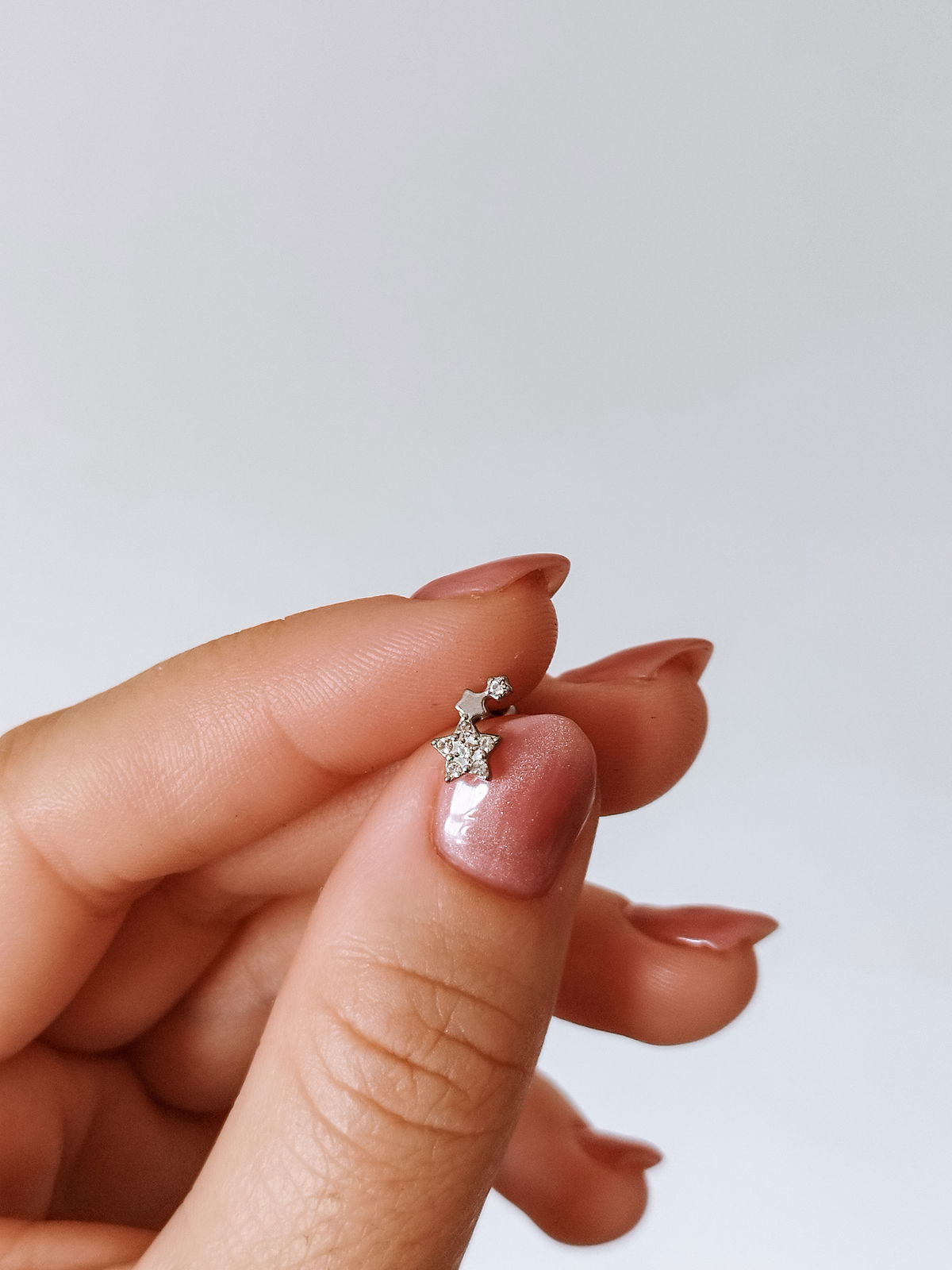 Aro barbell estrellas con cubic. Este tipo de piercing se puede usar en las perforaciones: flat, hélix, conch y lóbulo