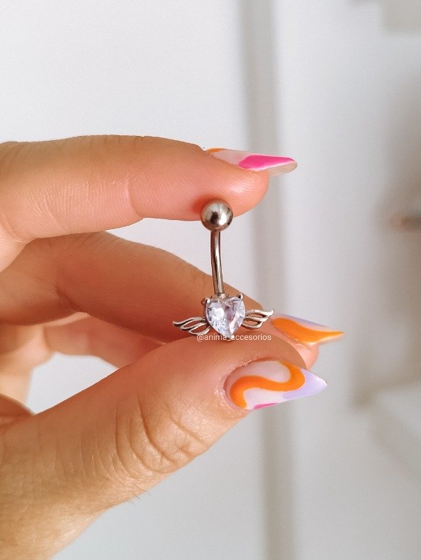 Piercing ombligo de ángel, corazón cubic con alas. Este tipo de piercing se puede usar en la perforación del ombligo