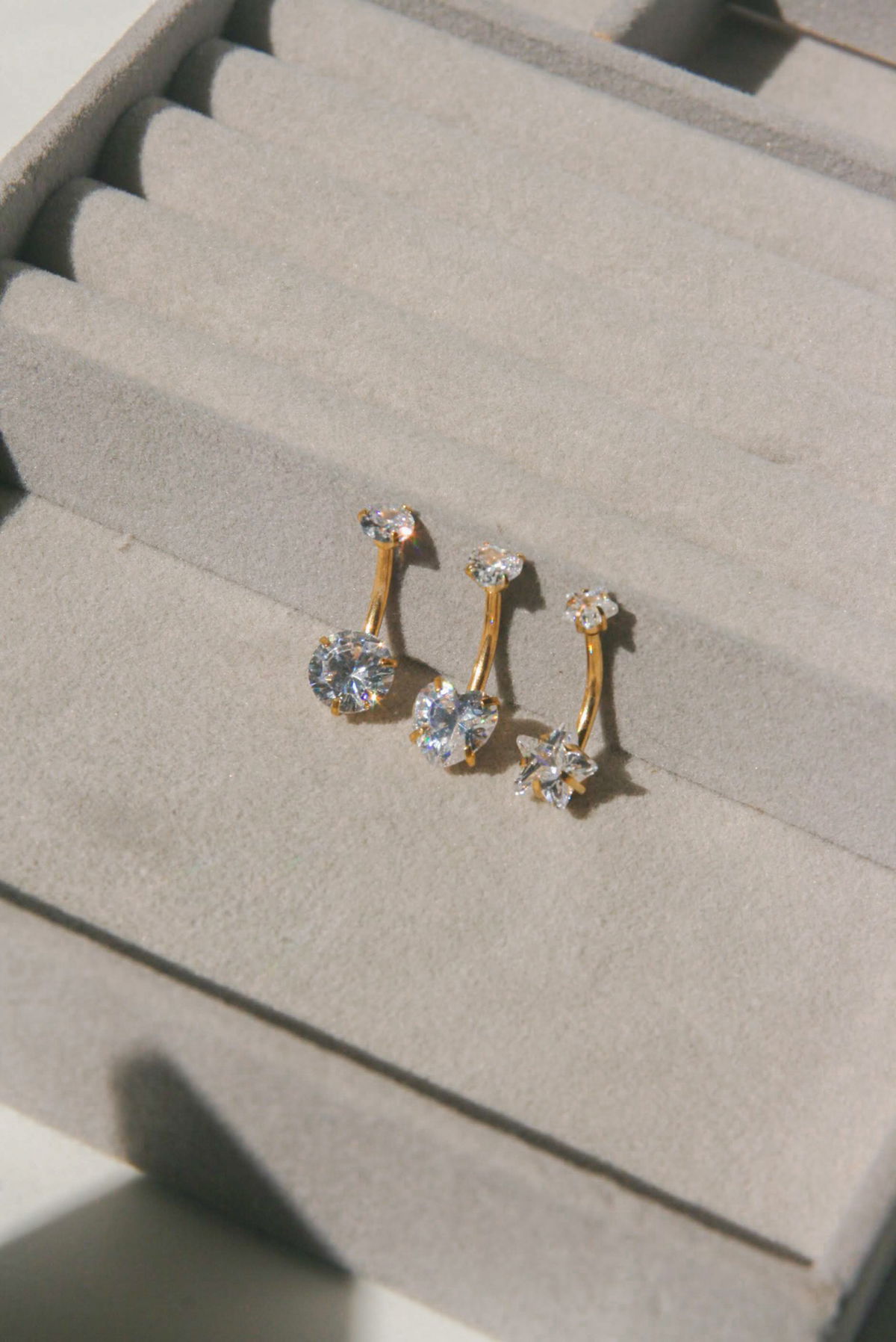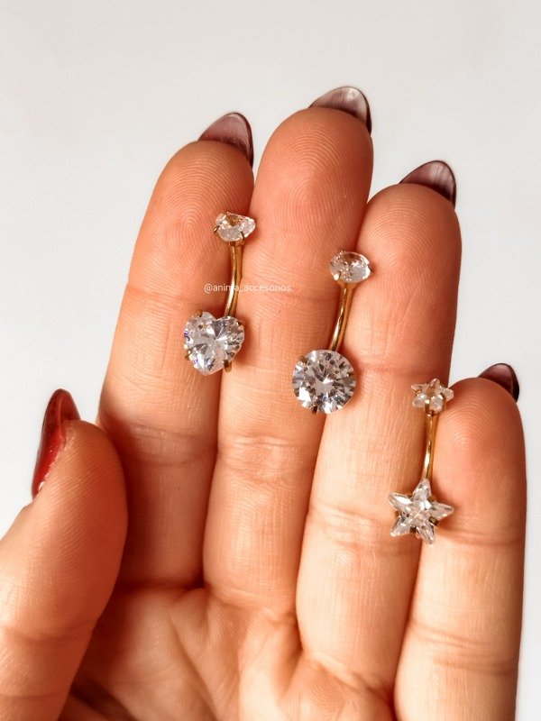 Piercing ombligo con cubic de formas engarzados. Tené en cuenta que por la forma que tienen no son los piercings mas comodos de llevar. Este tipo de piercing se puede usar en la perforación del ombligo