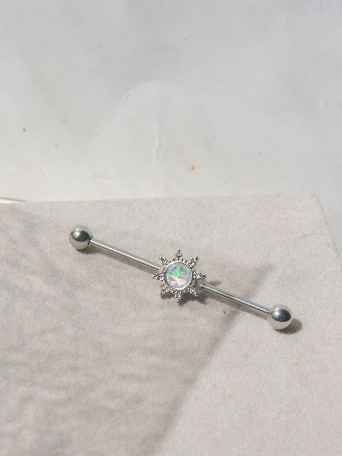 Piercing sol tornasolado. Este modelo podés usarlo con el dije de sol o sacarlo y usarlo como una barra simple. Tenes dos modelos en uno! Este tipo de piercing se puede usar en las perforaciones: indrustrial